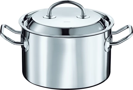 Rösle Multiply ist ein Mehrschichtmaterial aus Edelstahl und Aluminium, das die mittlere Schicht bildet und die Hitze schnell weiterleitet. Die Garzeit ist schneller als bei herkömmlichen Edelstahltöpfen.