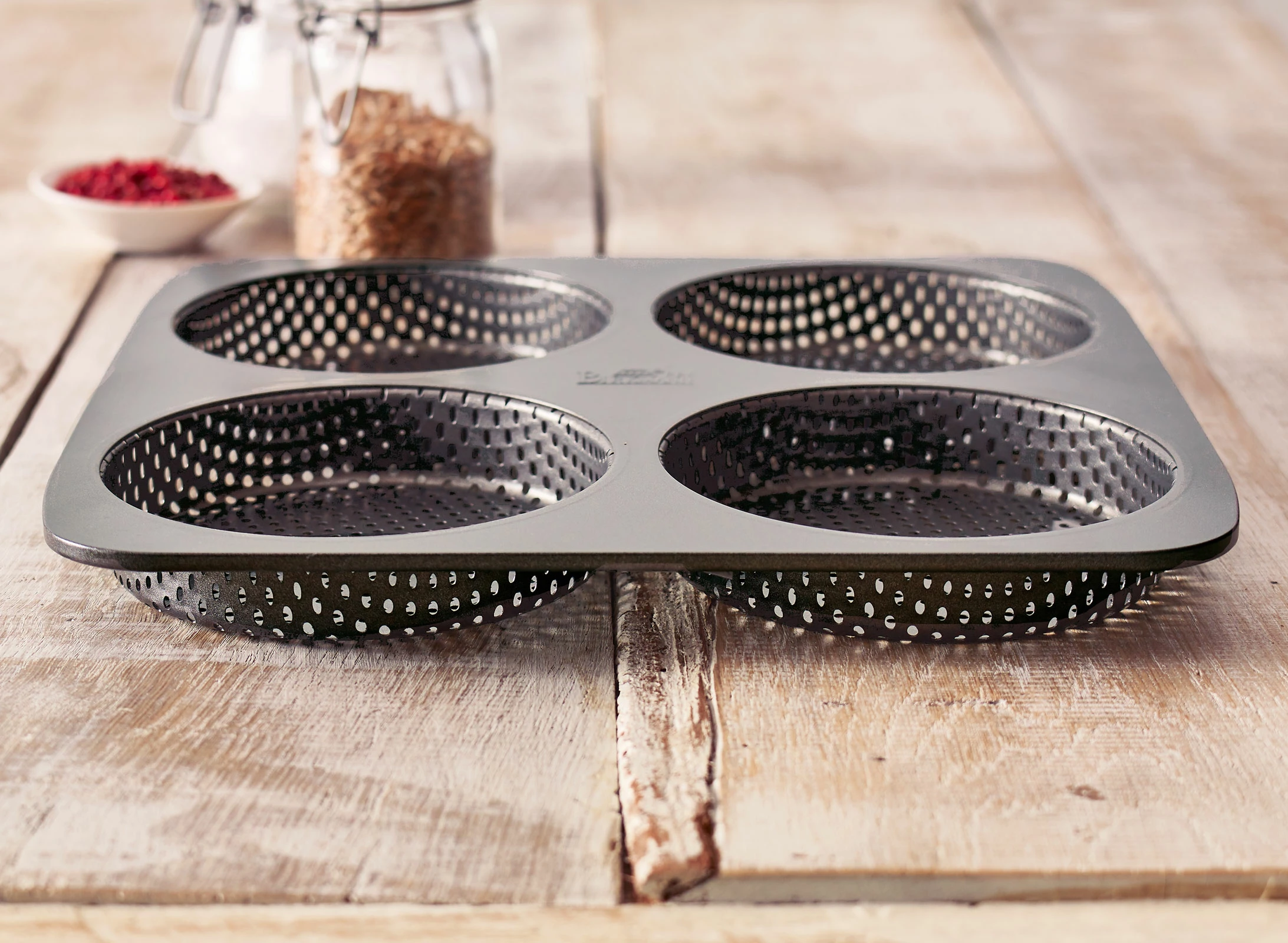 Das Burger Brötchen-Blech für 4 Stück aus der RBV Birkmann Backformen Serie Laib & Seele