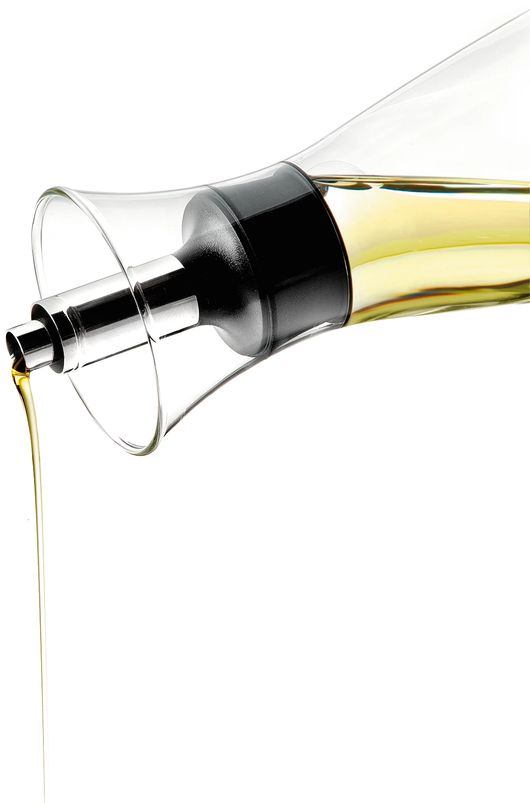 Füllen Sie edles Speiseöl oder feinen Essig in diese gelungene Eva Solo Öl- und Essigkaraffe, die so schön ist, dass sie beim Servieren auf dem Esstisch eine besonders gute Figur macht. Die Karaffe aus Borrosilikatglas ist vielfältig nutzbar, kann im Kühlschrank aufbewahrt werden und ist auch für heiße Flüssigkeiten geeignet, ohne Gießer sogar in der Mikrowelle nutzbar. Der Gießer ist zu 100 Prozent tropffrei mit einem dicht schließenden Verschluss.