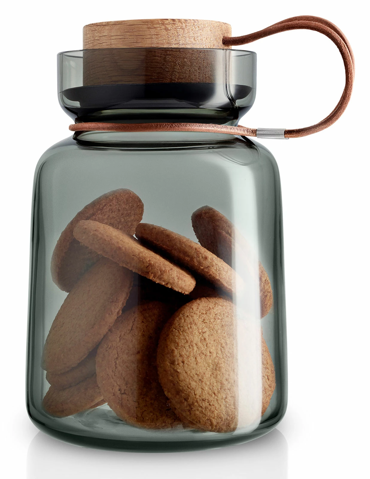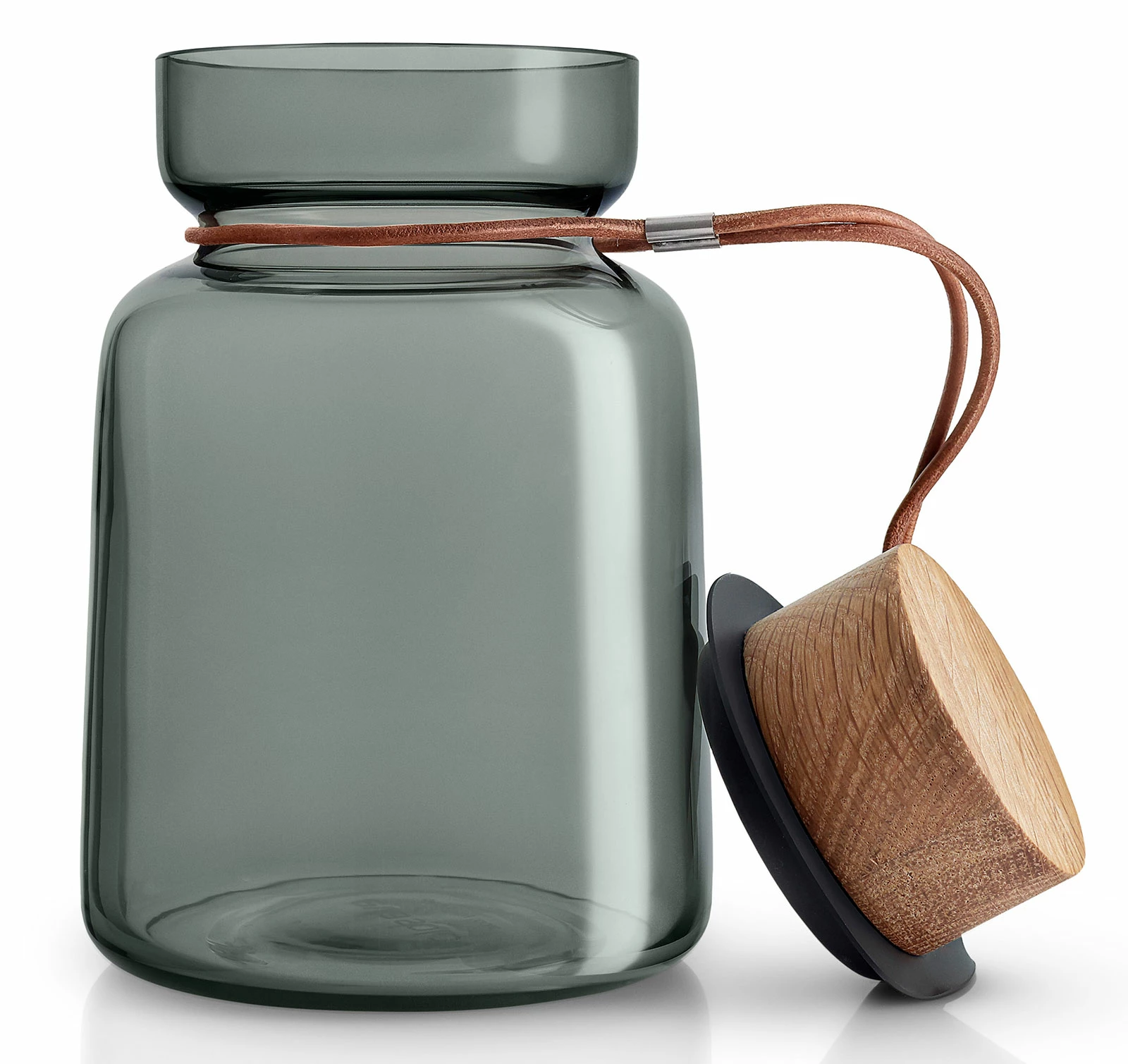 Die 1,0ltr. Silhouette Aufbewahrungsdose von Eva Solo stellt Ihre Lebensmittel regelrecht aus. Das edle Rauchglas schützt Ihre Trockenwaren vor Licht und erhält so ihr Aroma und ihre Farbe. Zudem schließt der wertige Deckel aus Eichenholz dicht. Lagern Sie in diesem Glas also Nudeln, Mehl oder Trockenobst und schmücken Sie gleichzeitig Ihre Küche!