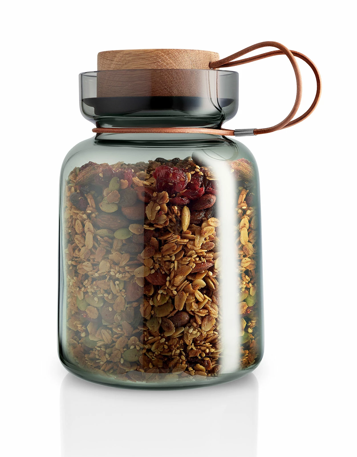 Sie ist stil- und auch aromaecht: 1,5ltr. Silhouette Aufbewahrungsdose von Eva Solo. Mit ihrem Korpus aus mundgeblasenem Rauchglas und ihrem luftdicht schließenden Eichenholzdeckel hält sie Ihre Trockenware ideal frisch. Und dabei kann sie sich sehen lassen. In diesem Vorratsglas lagern Sie Lebensmittel nicht nur, Sie stellen sie aus!