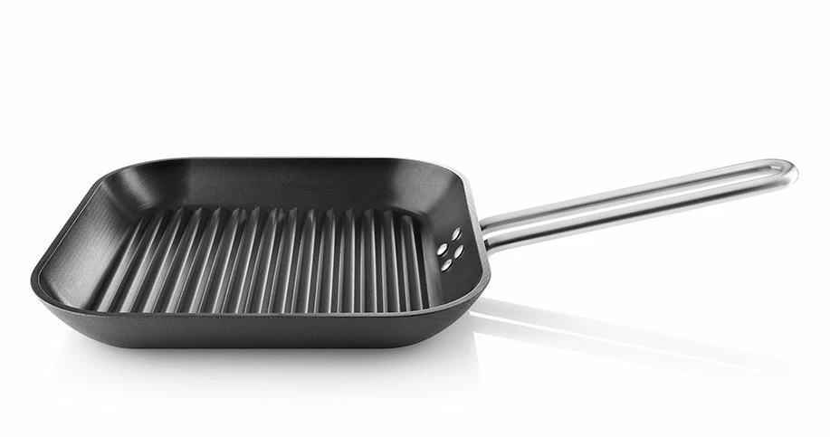 Wer hochwertiges Kochgeschirr schätzt und liebt, hat mit der Grillpfanne Eva Trio Professional 28x28cm bestes Profi-Werkzeug. Die Grillpfanne mit klassischem Grillmuster ist aus Aluguss mit optimaler Wärmeverteilung. Auf die extrem hochwertige PFOA und PFOS-freie Slip-Let®-Antihaftbeschichtung wird 5 Jahre Garantie gewährt. Slip-Let® ist eine von Eva Solo registrierte und geschützte Bezeichnung. Andere beschichtete Pfannen auf dem Markt haben ähnliche geschützte Bezeichnungen wie Teflon, SilverStone oder Durit.