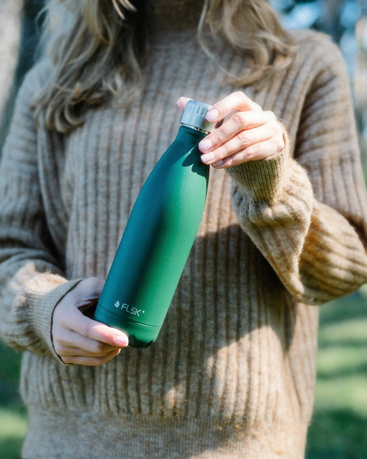 Die Isolierflasche FRST Generation 2 von FLSK in forestgrün mit 0,5ltr. Fassungsvermögen