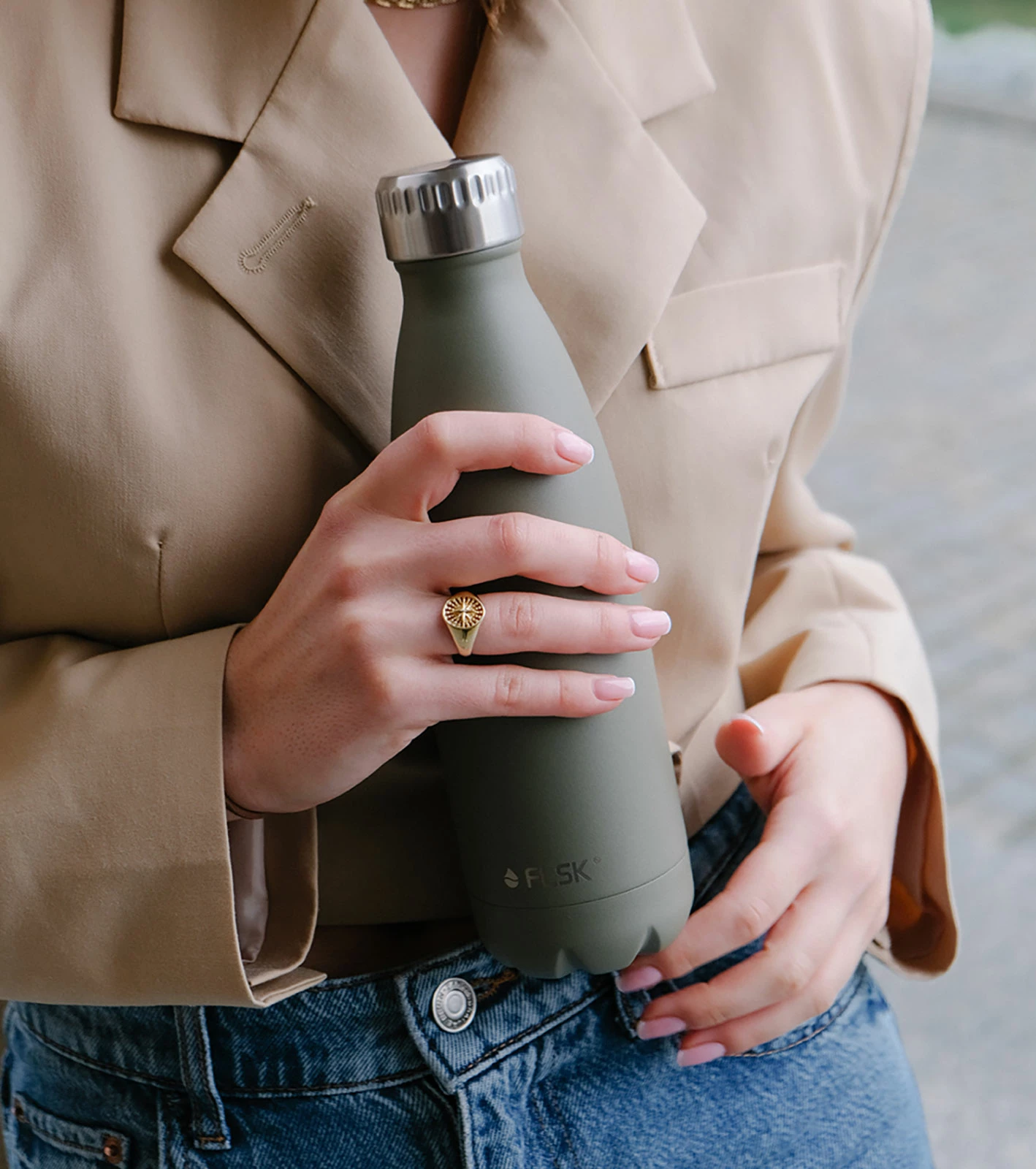 Die FLSK Isolierflaschen sind die perfekte Kombination aus trendigem, nachhaltigem Design und alltagstauglichen Eigenschaften, was sie zu unverzichtbaren Begleitern macht. Hergestellt werden sie aus hochwertigem Edelstahl, der nicht nur geschmacksneutral ist und gut isoliert, sondern diese Flaschen auch sehr stabil macht. Die VICC (Vacuum Insulated Copper Coating) Technologie mit Vakuumschicht zwischen dem Edelstahl und einer zusätzlichen Kupferschicht sorgt für eine hervorragende Isolation. Anders als andere Isolierflaschen oder Thermoskannen mit Glaseinsatz können FLSK Flaschen auch herunterfallen, ohne kaputt zu gehen. Selbst das pulverbeschichtete Äußere nimmt so schnell keinen Schaden.