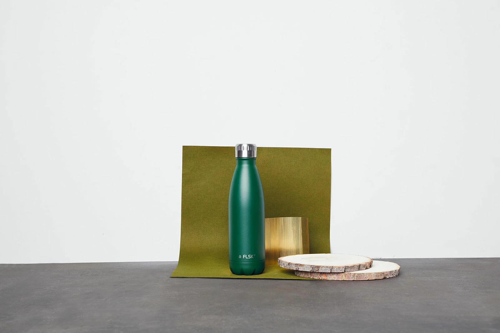Die FLSK Isolierflasche [fla:sk, flask] FRST Generation 2 in forestgrün ist eine gelungen optimierte Kombination aus trendigem, nachhaltigem Design und alltagstauglichen Eigenschaften, die diese Edelstahl-Isolierflasche zu einem unverzichtbaren Begleiter macht.