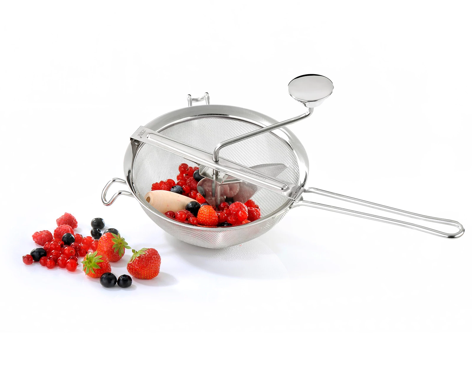 Das Gefu Passiersieb Fleißiges Lieschen lässt sich nicht nur zum Passieren einsetzen, sondern ohne das Rührwerk kann es auch als Küchensieb genutzt werden. Durch das Holzkugelrührwerk verarbeiten Sie Obst und Gemüse ganz einfach zu Suppen, Babybrei, Pürees, Marmelade, Gelees oder Gemüse Chutneys. Das Rührwerk lässt sich zum Reinigen des Geräts herausnehmen. Sie können die Holzkugel zudem abziehen und die Edelstahlbauteile in die Spülmaschine geben.