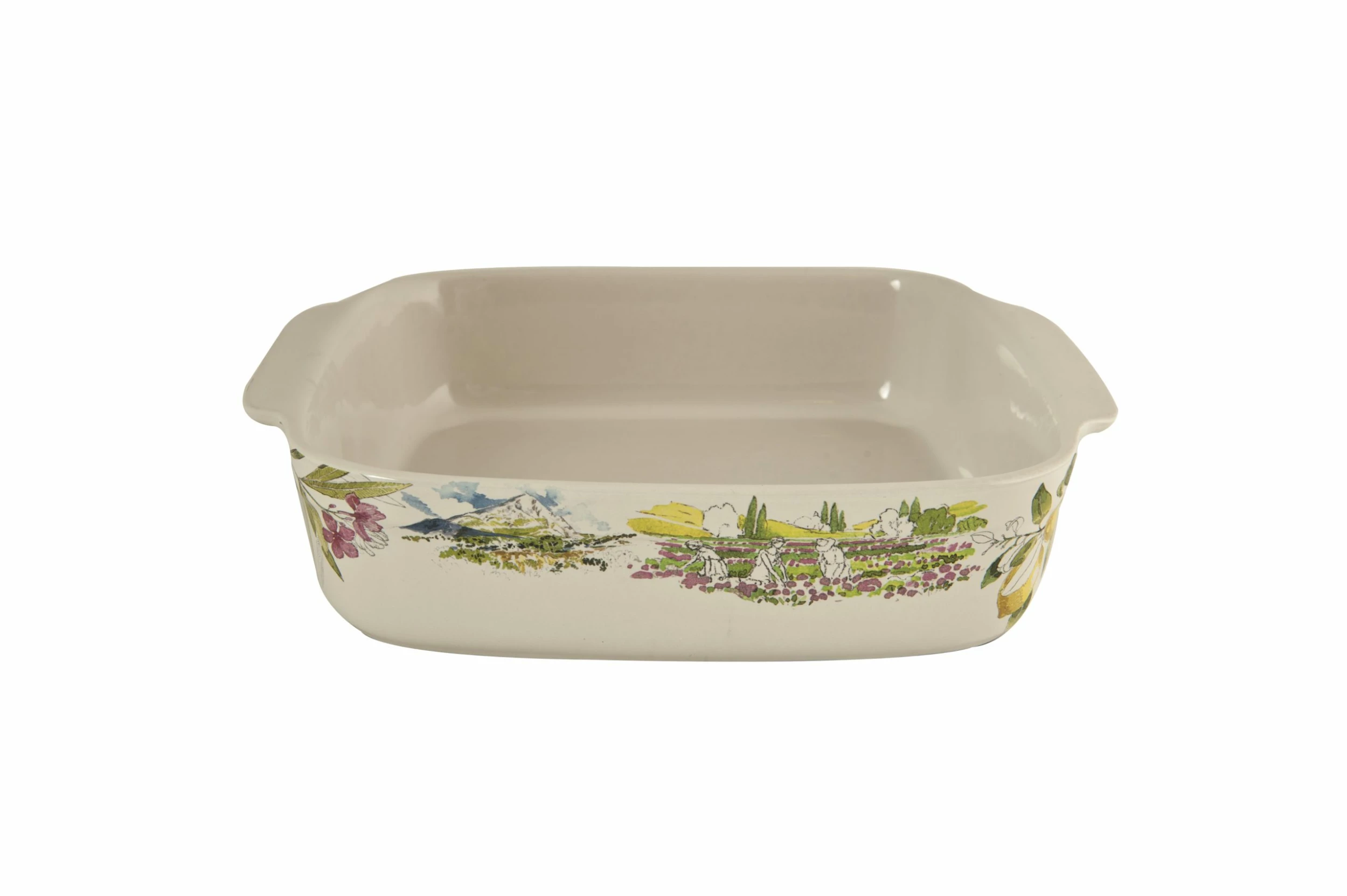 Die eckige fast quadratische Gien Provence Auflaufform eignet sich sowohl als Gratinier Schüssel als auch als Auflaufform. Sie besteht aus hitzebeständiger Keramik und ist der schönste Mittelpunkt für Ihre Festtafel. Auf der Außenseite sind Verzierungen in Form von französischen Obstplantagen zu finden.