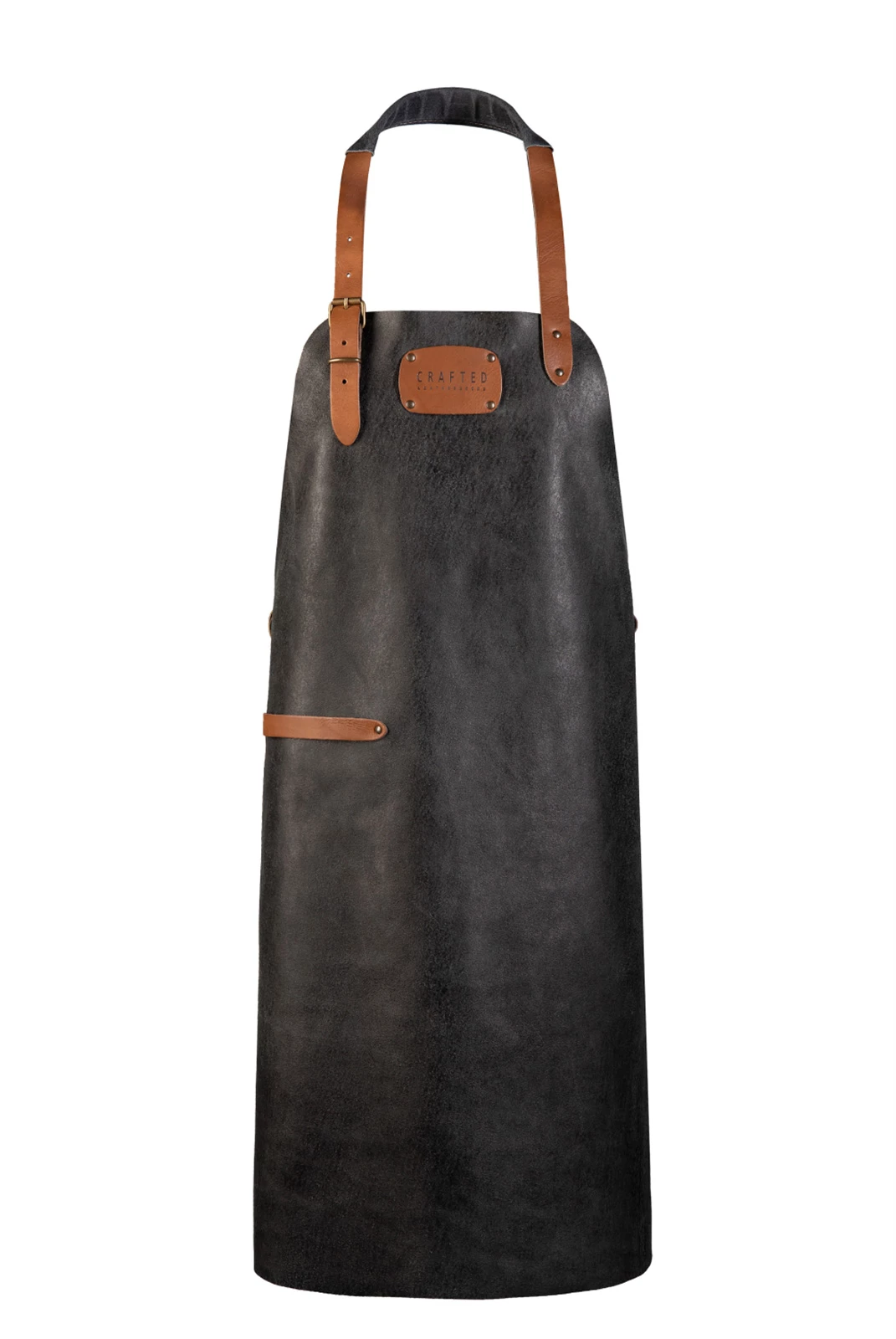 Die schwarze Rustic Leather Grillschürze aus der Crafted Leather Schürzen Serie
