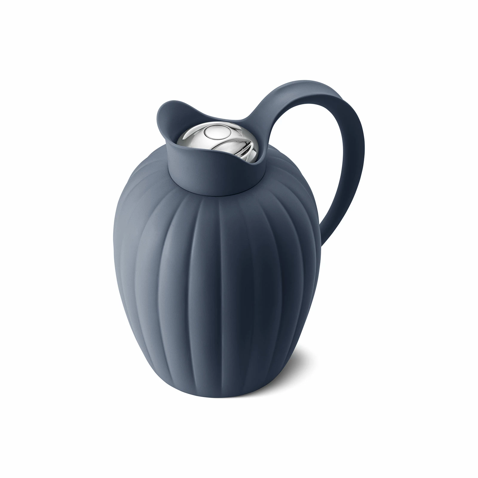 Die blaue 1,0ltr. Bernadotte Thermoskanne mit Druckknopf aus Kunststoff von Georg Jensen