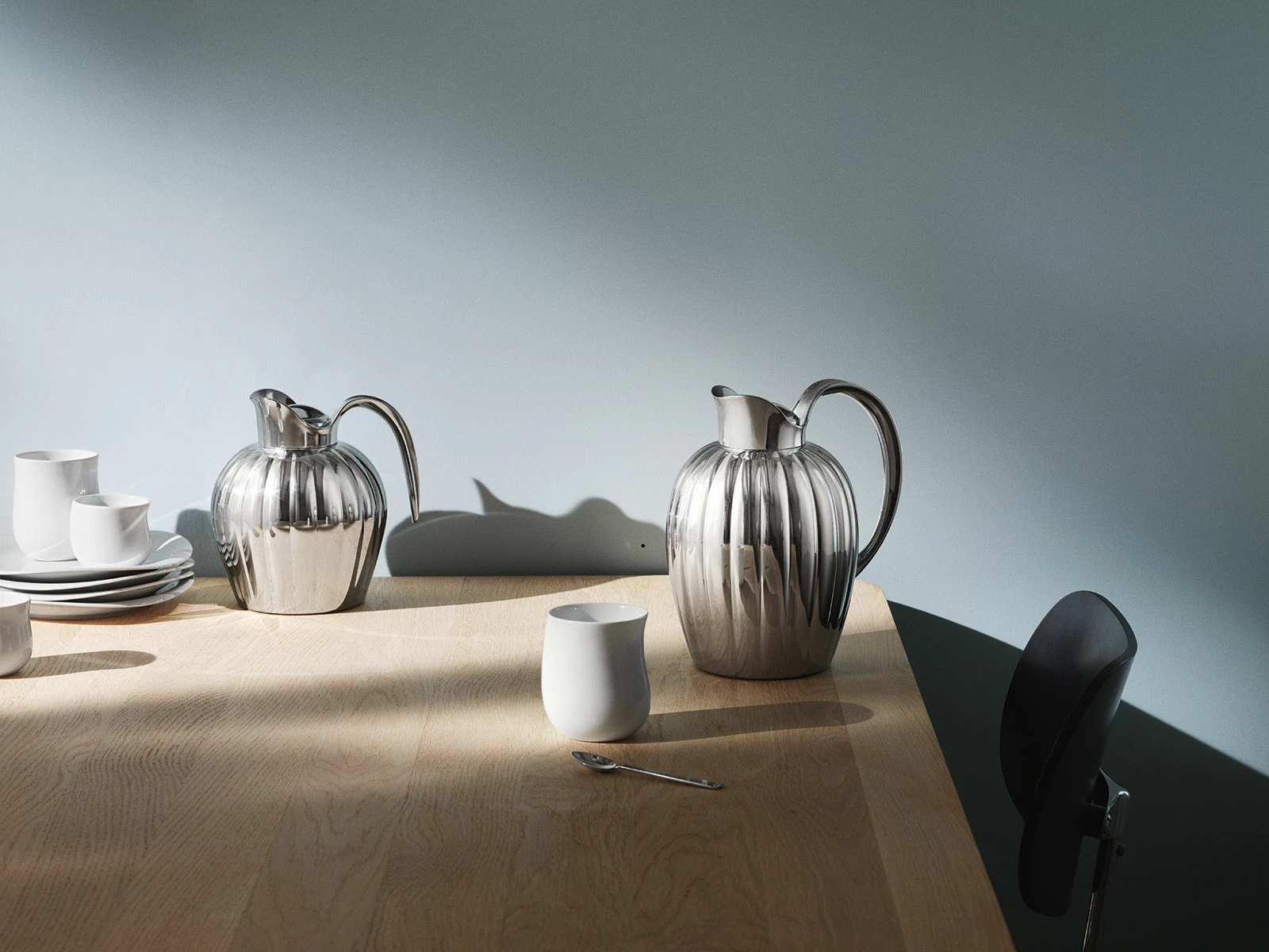 1938/39, zum Ende der Art Déco Ära, entwarf der schwedische Designer und Illustrator Prinz Sigvard Bernadotte, Onkel der dänischen Königin Margarete, in enger Zusammenarbeit mit der renommierten Firma Georg Jensen Sølvsmedie die Kollektion Bernadotte. Die ehemals aus reinem Sterlingsilber produzierten Stücke glänzen nun aufwändig handpoliert in modernem Edelstahl und sind bekannt für ihre feinen und markanten Linien. Auch heute noch ist die Kollektion deshalb sehr beliebt.