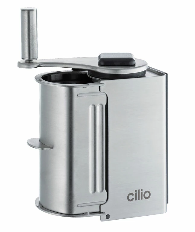 Mit der Cilio Käsereibe DELUXE können Sie einen formschönen Klassiker erwerben, ein Designstück aus satiniertem Edelstahl mit hoher Funktionalität. Die leicht gängige Reibe mit Kurbel liegt gut in der Hand, wenn Sie frischen Parmesan, Pecorino oder Grana Padano über Ihre duftende Zitronenpasta oder Ihr Trüffelrisotto reiben. Der frisch geriebene Käse krönt natürlich auch Rucolasalat mit Champignons und Knoblauchdressing! Auf dem satinierten Edelstahl fallen Fingerabdrücke nicht auf, die Cilio DELUXE ist einfach auseinanderzunehmen und darf in die Spülmaschine. Die Reibe zerkleinert auch Schokolade und Nüsse für Desserts oder Müsli.