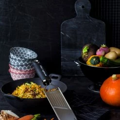 Diese Microplane Master Reibe mit Ihrer 2-Wege-Schneide und dem edlen Griff aus Walnussholz bringt schnell exzellente Ergebnisse. Wenn Sie etwas auf ihr reiben, entstehen sowohl bei der Hoch- als auch bei der Herunterbewegung dünne Streifen. Viel schneller als bei anderen Reiben! Das Ergebnis ist sehr dekorativ, also eignet sich dieses Werkzeug hervorragend dafür, Gemüse wie Gurken, Karotten oder Kohl für Salat zu zerkleinern. Aber für Käse oder Schokolade lässt sie sich ebenfalls gut verwenden.