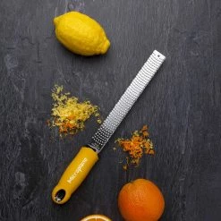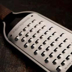Die Microplane Master Serie bietet Küchen- und Gewürzreiben für den gehobenen Geschmack. Mit ihren edlen Griffen aus geöltem Walnussholz sind diese Reiben nicht nur angenehm zu halten, sondern auch hübsch anzuschauen. Und sie sind praktisch: Das präzise Fotoätzverfahren schafft viele kleine Klingen, die sehr lange scharf bleiben – und ein Gummielement am unteren Ende verhindert, dass die Geräte verrutschen, während Sie sie benutzen.