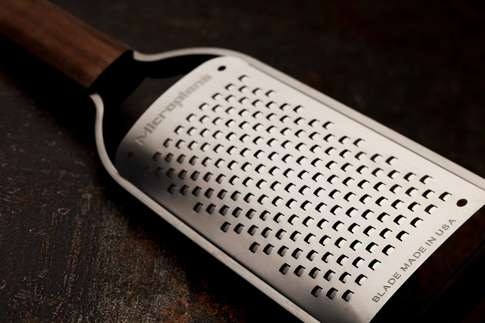 Die grobe Reibe mit Griff aus Walnussholz aus der Microplane Master Serie