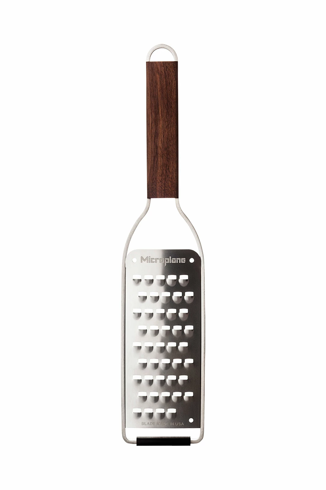 Die sehr grobe Reibe mit Griff aus Walnussholz aus der Microplane Master Serie
