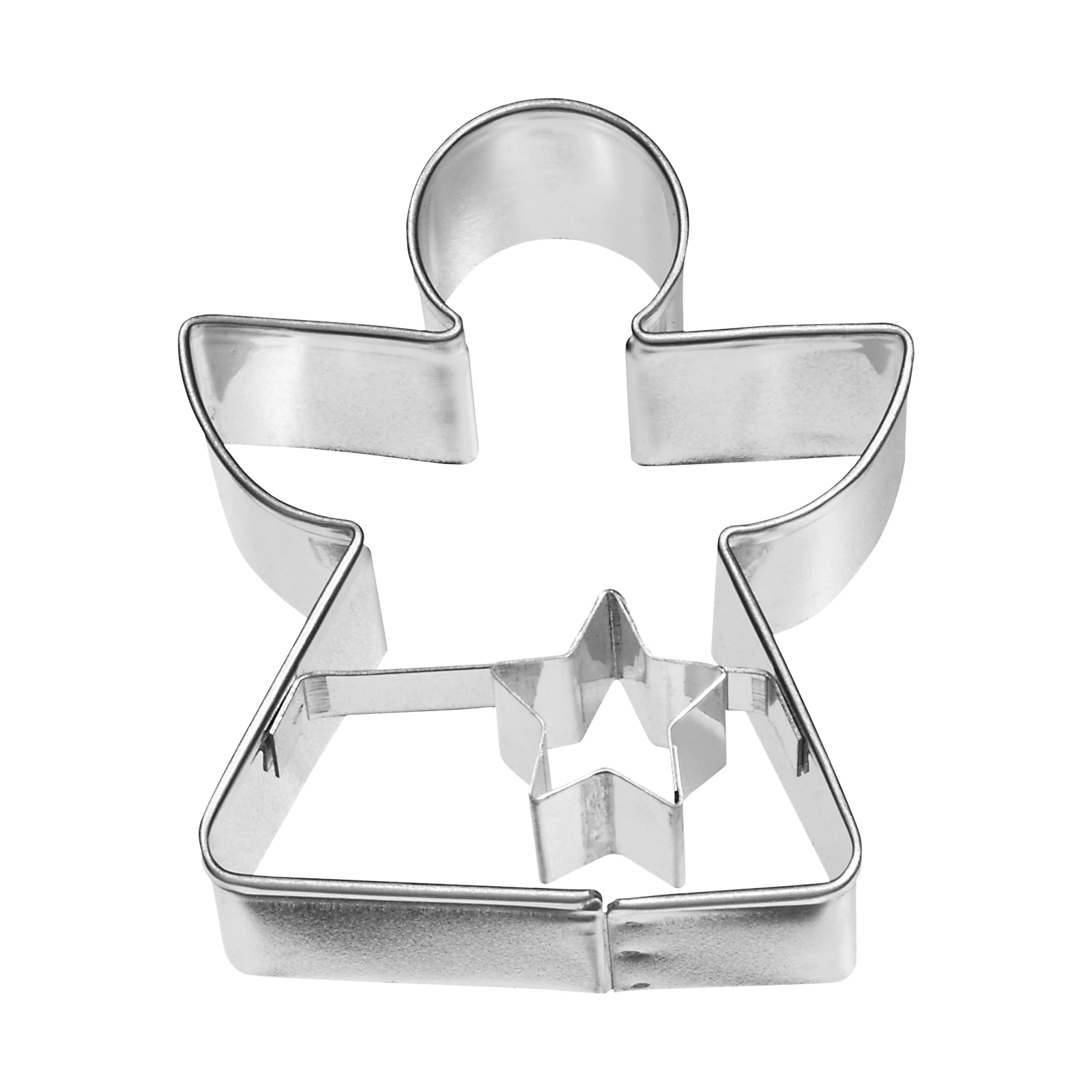 In der Weihnachtsbäckerei gibt’s so manch einen kleinen Bäcker, der sich über den Edelstahl-Ausstecher Engel mit Innenprägung 6,0cm von RBV Birkmann freuen wird. Diese einfache Plätzchenform produziert Kekse, die auch von kleinen Händen aus dem Rest des Teiges entfernt werden können, ohne zu reißen. Besonders sind die Plätzchen dann trotzdem: Der Keksausstecher prägt einen kleinen Stern auf den Rock eines jeden Engels.
