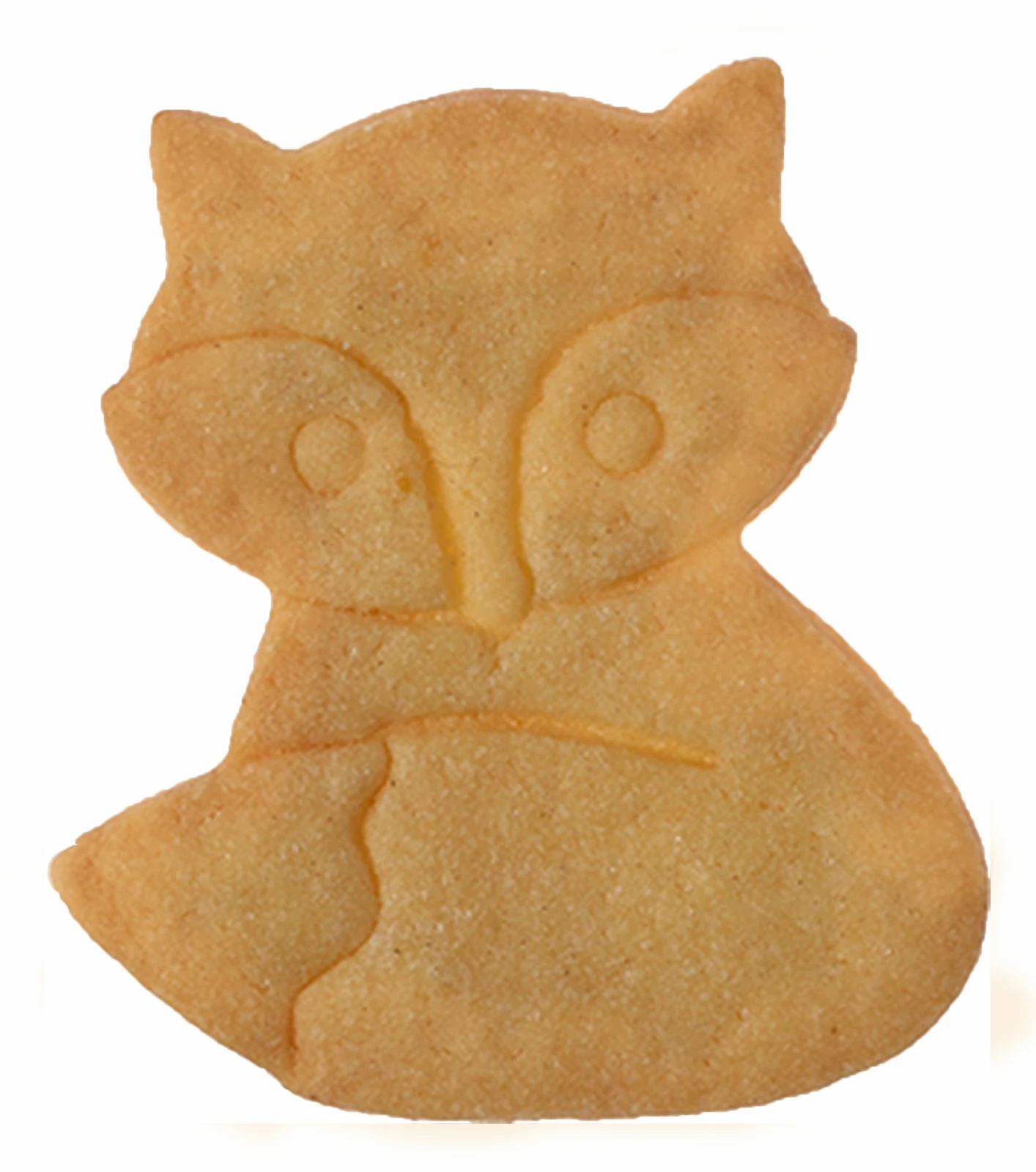 Wer nach besonderen Keksformen sucht, der wird mit diesem 7,0cm großen Edelstahl-Ausstecher des Charakters Fuchs Fero mit Innenprägung von RBV Birkmann fündig. Er stellt einen sitzenden, cartoonartigen Fuchs dar – dank Innenprägung sehr detailliert. Sogar ein Gesicht hat er! So ist er auch ideal dafür geeignet, mit bunter Glasur verziert zu werden. Die wichtigen Linien sind für Sie bereits vorgezeichnet.
