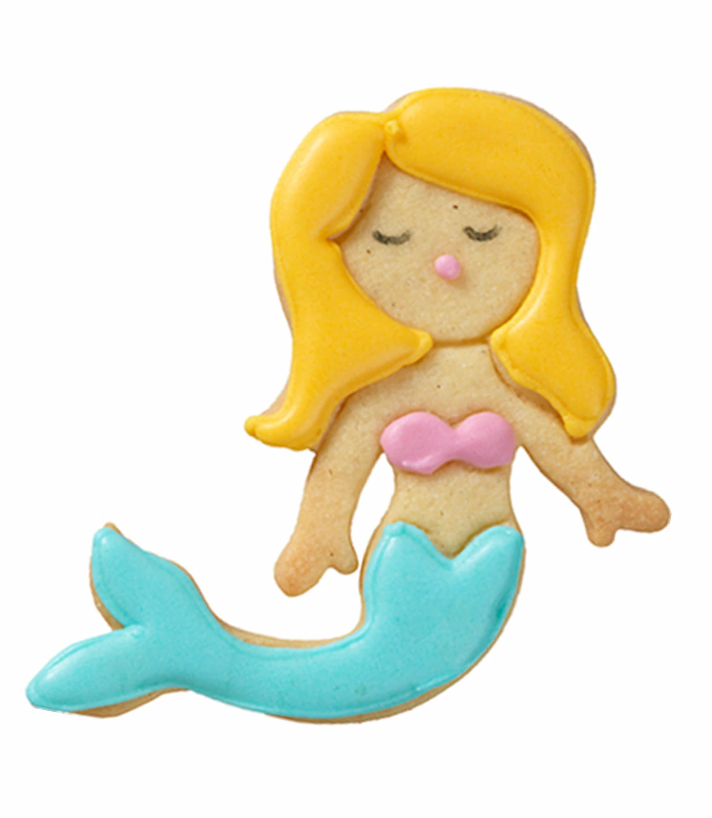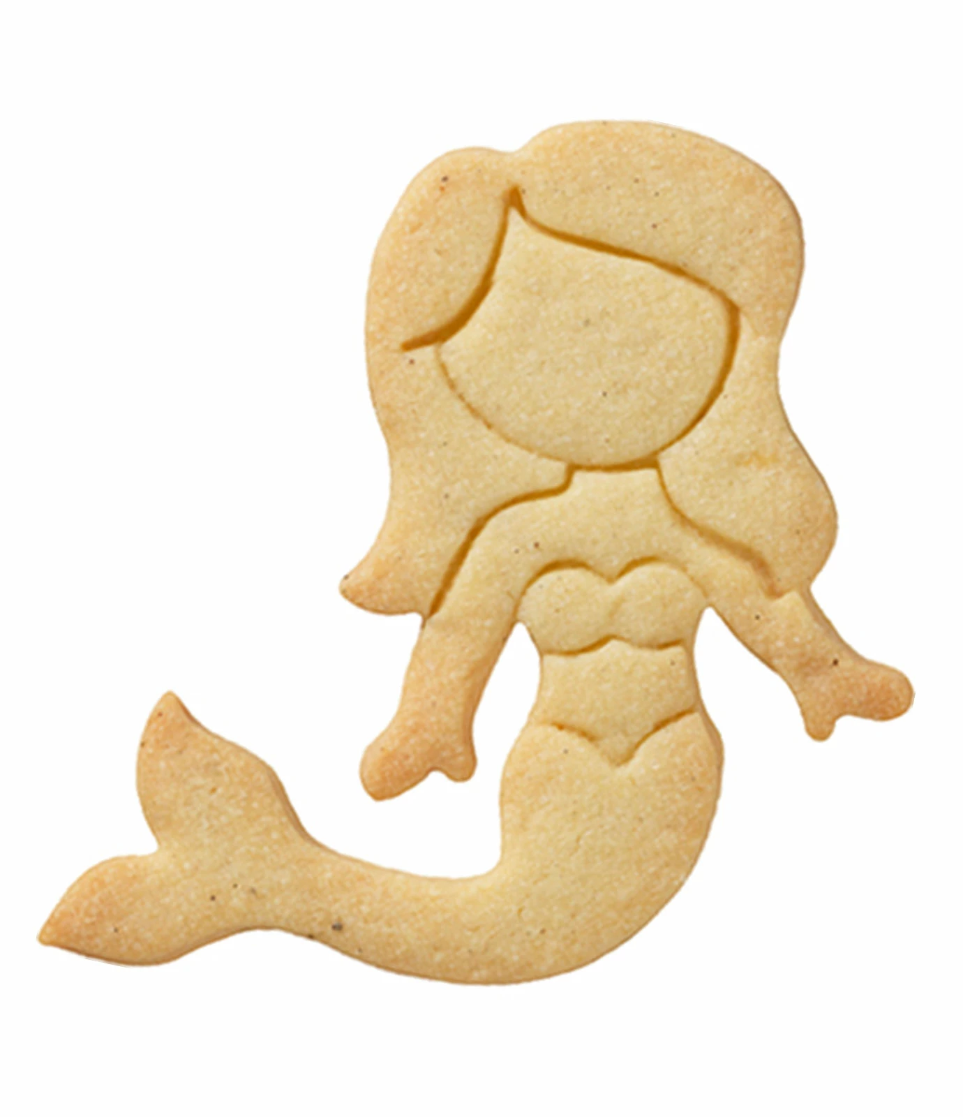 Dieser Edelstahl-Ausstecher in Form einer 9,0cm großen schwimmenden Meerjungfrau von RBV Birkmann wird ganz besondere Kekse produzieren. Nicht nur hat er ein außergewöhnliches Motiv – er bietet außerdem eine tolle Gelegenheit zum Verzieren mit farbiger Glasur und schillerndem Dekorzucker. So können Sie dieses Fantasiewesen sehr magisch aussehen lassen!