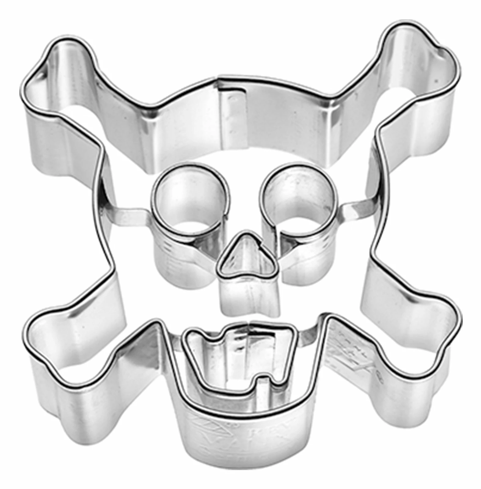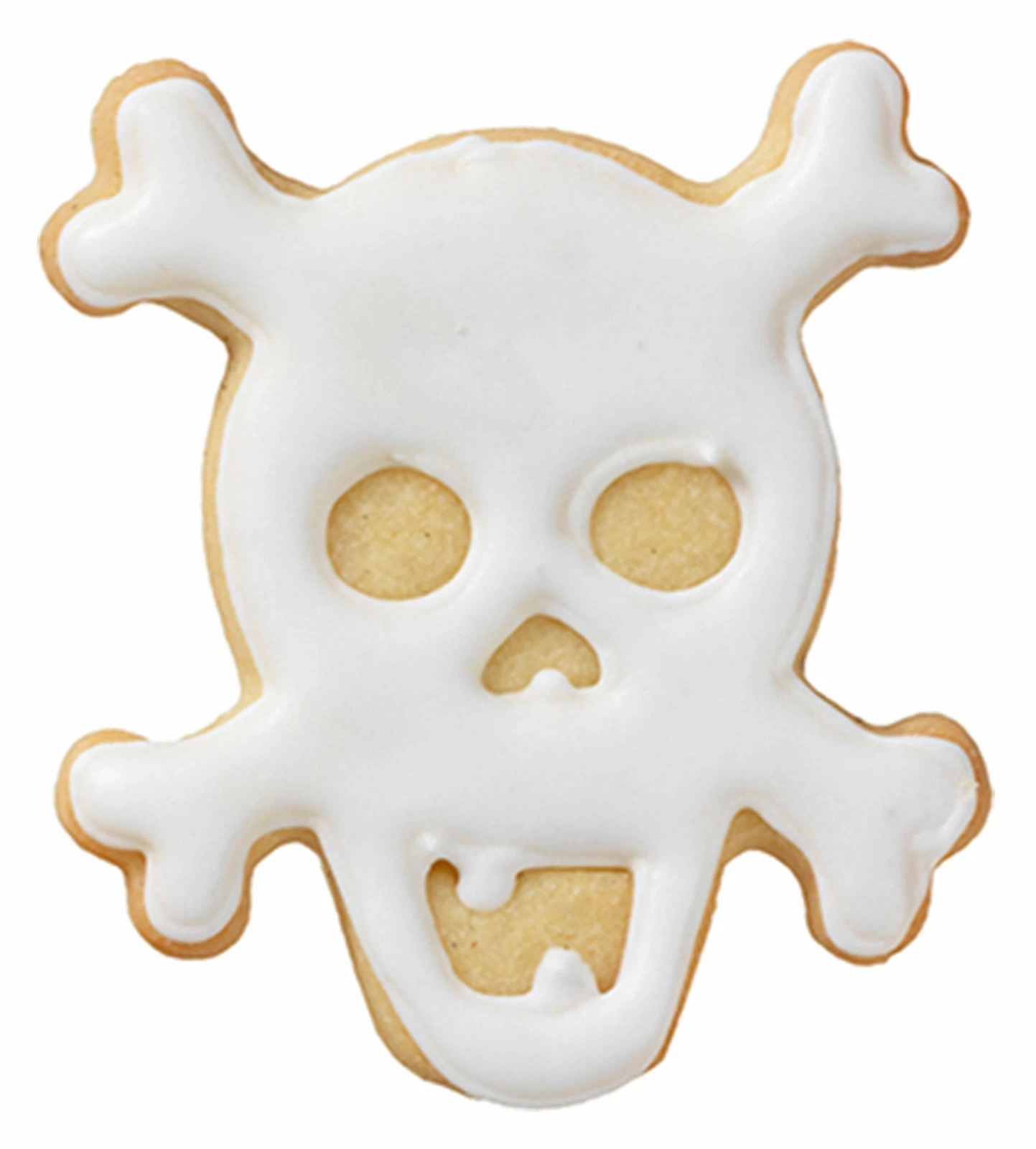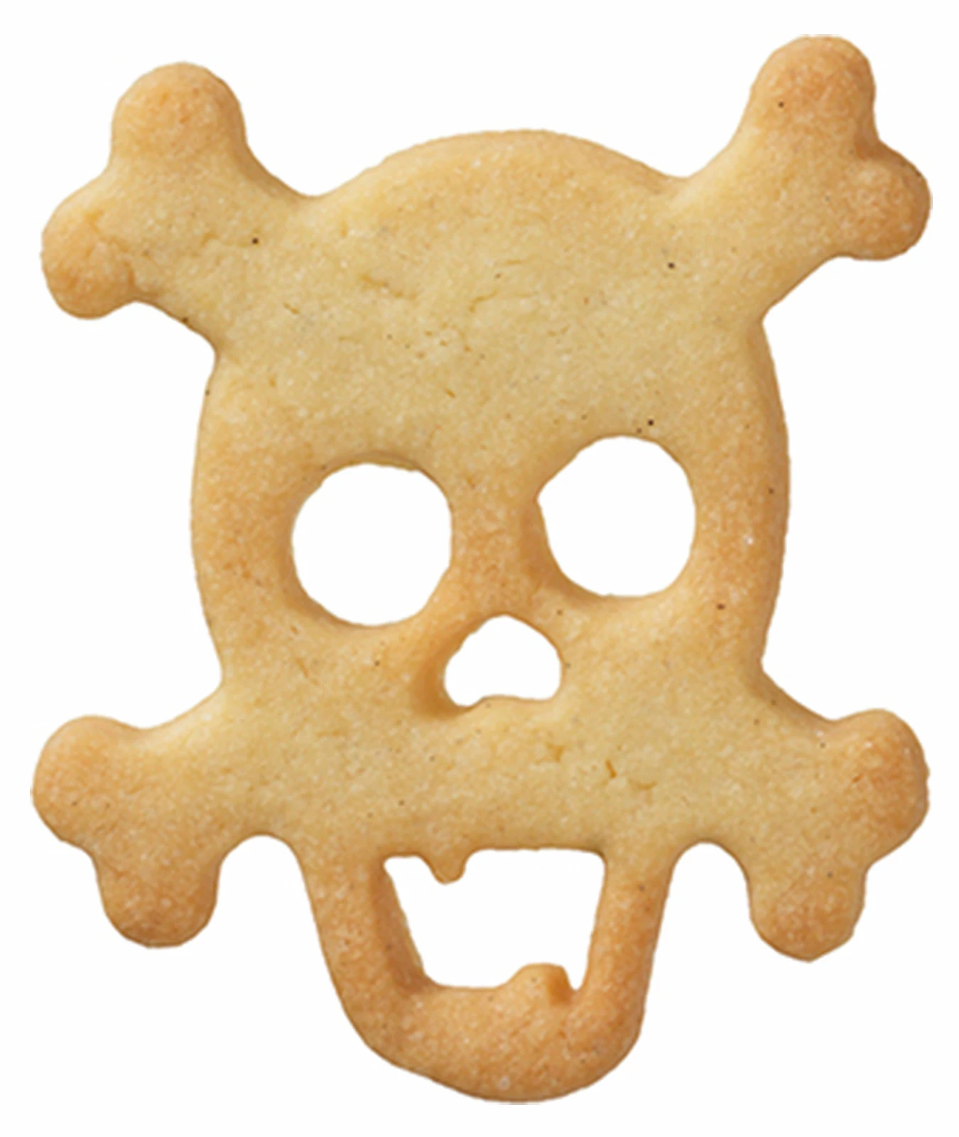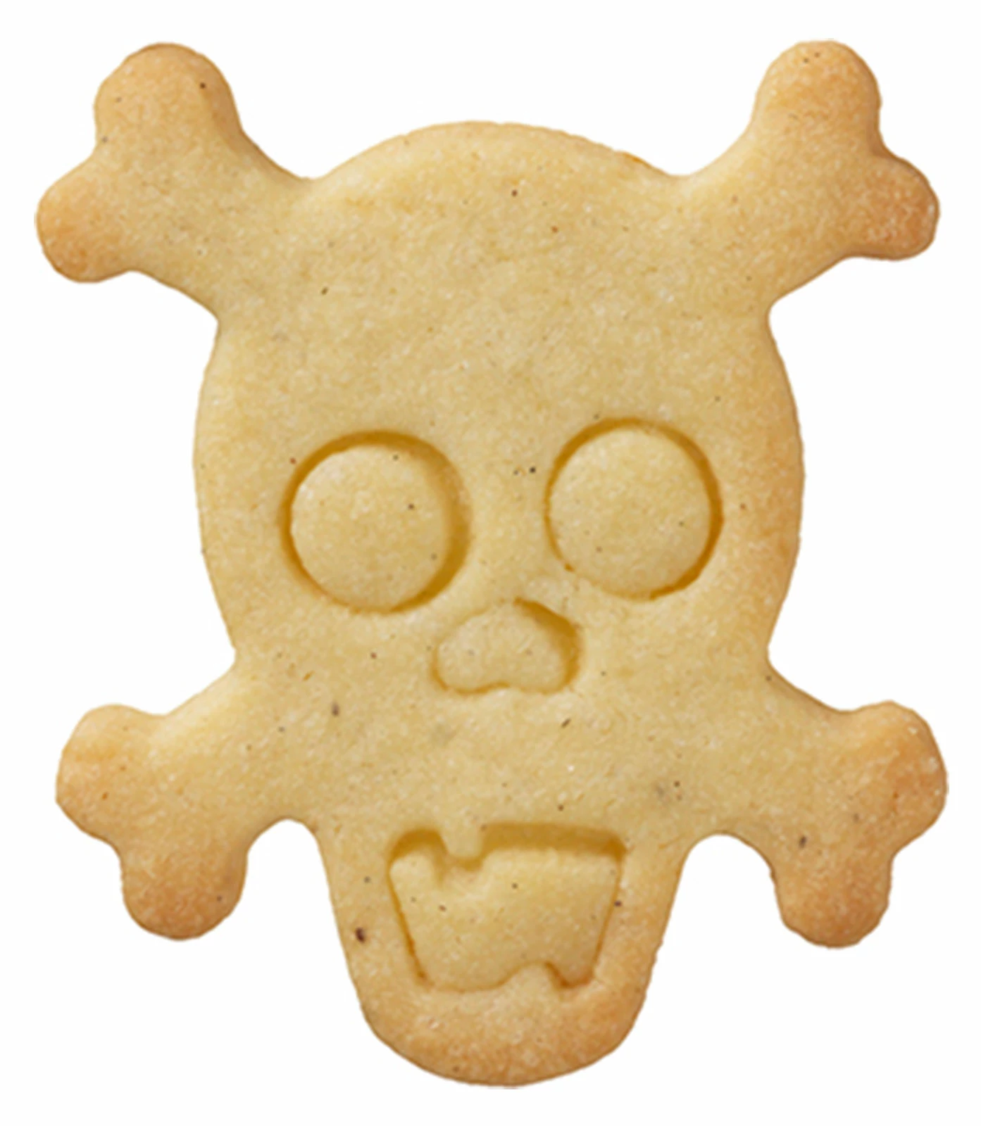 Mit Keksen, die Sie mit diesem 7,0cm Edelstahl-Ausstecher in Totenkopfform mit Innenprägung von RBV Birkmann backen, können Sie Ihren Gästen so richtig das Gruseln beibringen. Insbesondere zu Halloween, aber auch zu Piraten-Themenpartys ist dieser Totenkopf-Keks mit überkreuzten Knochen im Hintergrund genau das Richtige. Die Innenprägung trägt dazu nur bei, denn sie hinterlässt ein gruseliges Gesicht auf dem Keks.