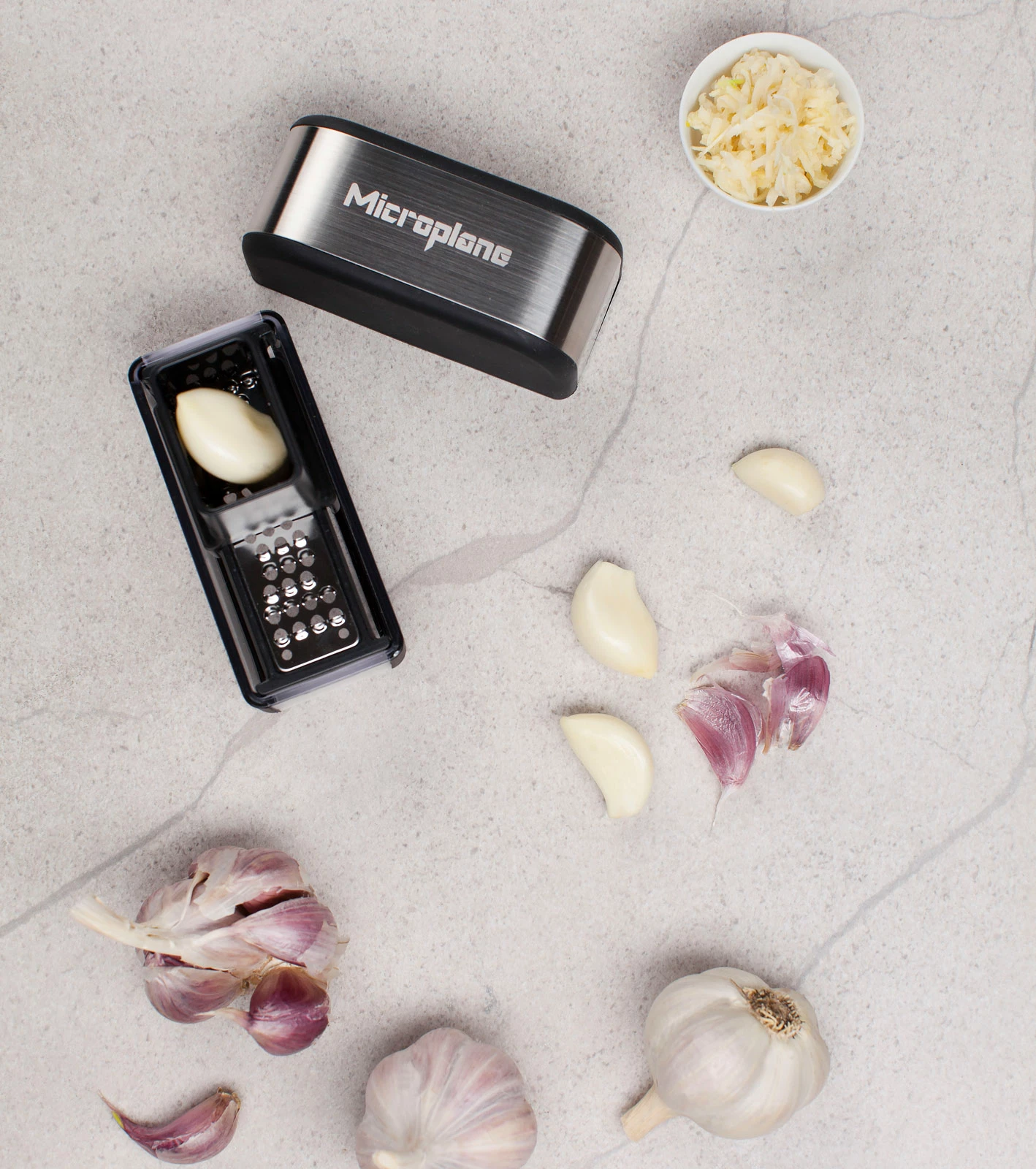 Der Microplane Specialty Knoblauchschneider schwarz, schneidet statt die Zehen zu pressen einfach präzise, messerscharf und ohne Kraftaufwand. Mit dem kleinen und kompakten Gerät wird der Knoblauch durch einfaches hin- und her bewegen fein geschnitten. Die ätherischen Öle und Aromastoffe können sich wunderbar entfalten.
