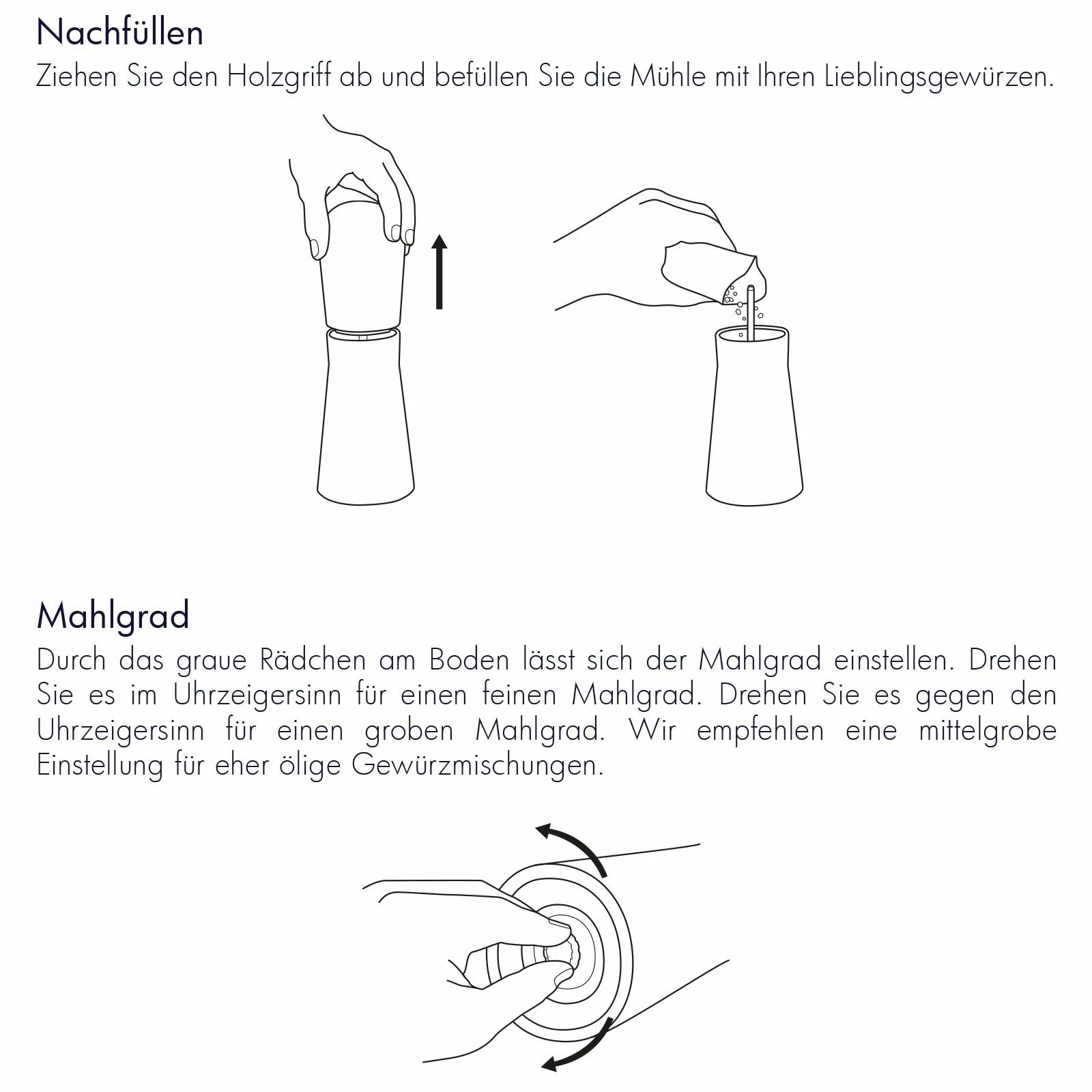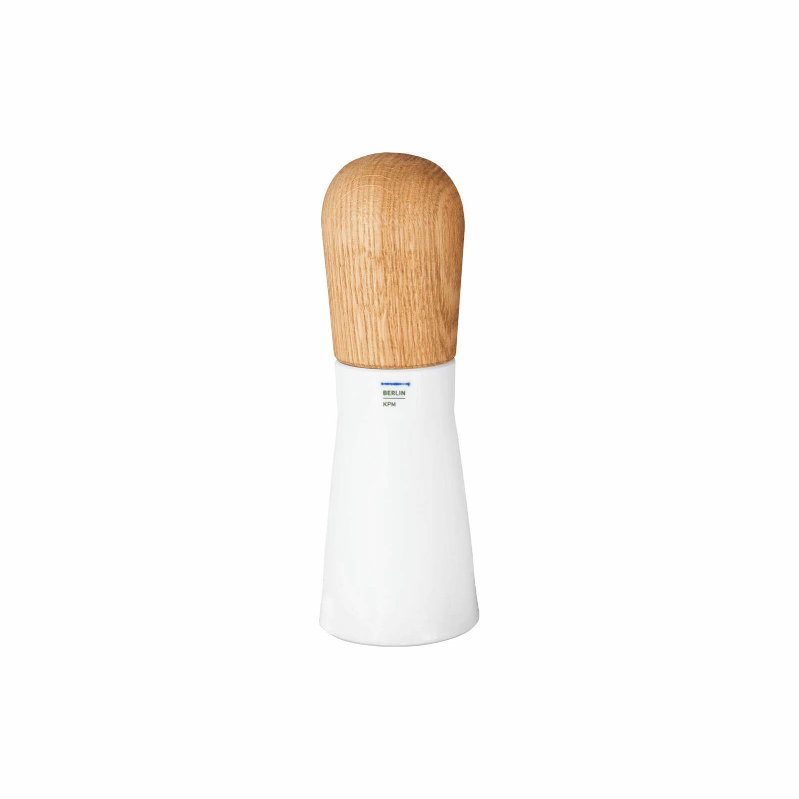 Geben Sie Ihren Speisen die richtige Würze mit der KPM LAB Salzmühle. Wieder einmal begeistert die Manufaktur mit funktionaler Ästhetik. Durch das glänzende Porzellan und die natürliche Oberfläche des Echtholz-Griffs entsteht ein spannender Kontrast. Der Griff der Salzmühle besteht aus heller Eiche. Eine große Öffnung macht das Befüllen der Mühlen ganz einfach. Die KPM Mühle verfügt über ein stufenweise verstellbares Mahlwerk und einen sicheren Stand.