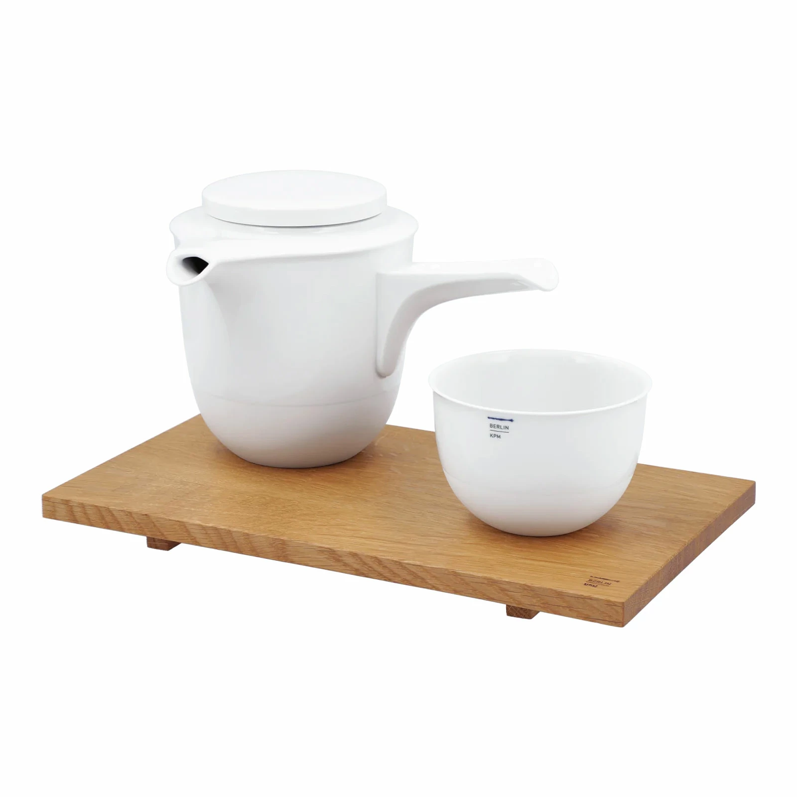 Im 5-teiligen LAB Tee-Set von KPM Berlin ist alles enthalten, was Sie für eine private Tee-Zeremonie benötigen. Die 0,80ltr. Teekanne aus Porzellan beeindruckt nicht nur durch innovatives Design, sondern auch durch ein perfekt passendes Teesieb aus Edelstahl. Der kleine LAB Becher No. 1B hat die perfekte Größe für eine Portion Tee. Stellen Sie beides auf dem Eichenholzbrett ab, ist Ihr Tisch vor Wasserflecken und Hitzeschäden geschützt. Und der im Set enthaltene Oolong-Tee der Marke Paper & Tea schafft mit seinem ruhig-süßen Aroma die perfekte Wohlfühlatmosphäre. Auch toll als Geschenk für Tee-Liebhaber!