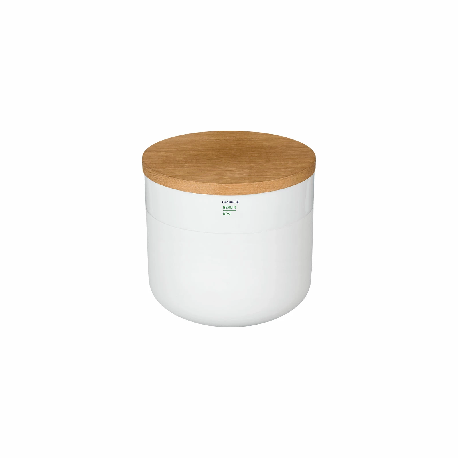 Multifunktionalität ist das Stichwort für die KPM Berlin LAB Kollektion. So lässt sich auch die Aufbewahrungsdose No. 110 charakterisieren. Die Porzellandose mit Holzdeckel kann als Aufbewahrungsgefäß für Kakao genutzt werden, aber auch Nüsse oder Konfekt könnten darin Platz finden. Sie ist nicht nur ein wahrer Hingucker, sondern auch Dank des Deckels aroma-, licht- und duftdicht verschlossen.