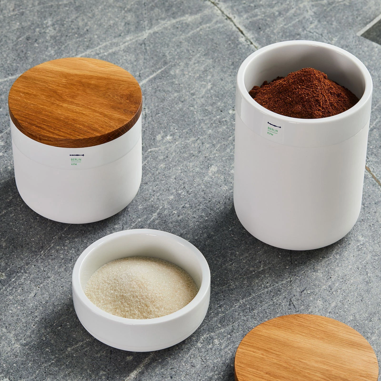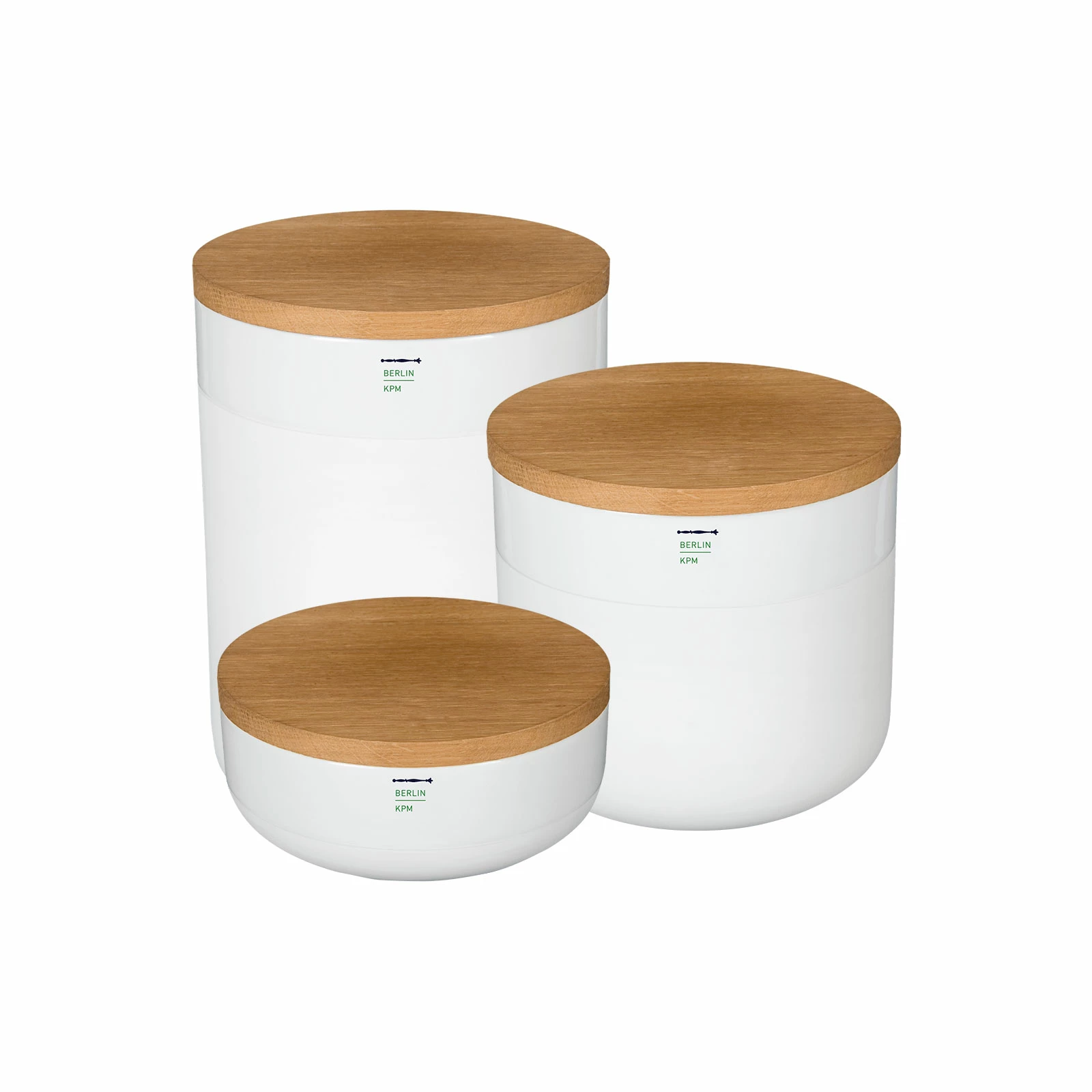 Multifunktionalität ist das Stichwort für die KPM Berlin LAB Kollektion. So lässt sich auch das Aufbewahrungs-Set charakterisieren. Die Porzellandosen mit Holzdeckel können Sie als Kaffeedosen, für Gewürze oder auch Schmuck verwenden. Drei verschieden große Gefäße bieten genügen Spiel- für Ihren Stauraum. Außerdem sind sie nicht nur schön, sondern auch Dank des Deckels aroma-, licht- und duftdicht verschlossen.