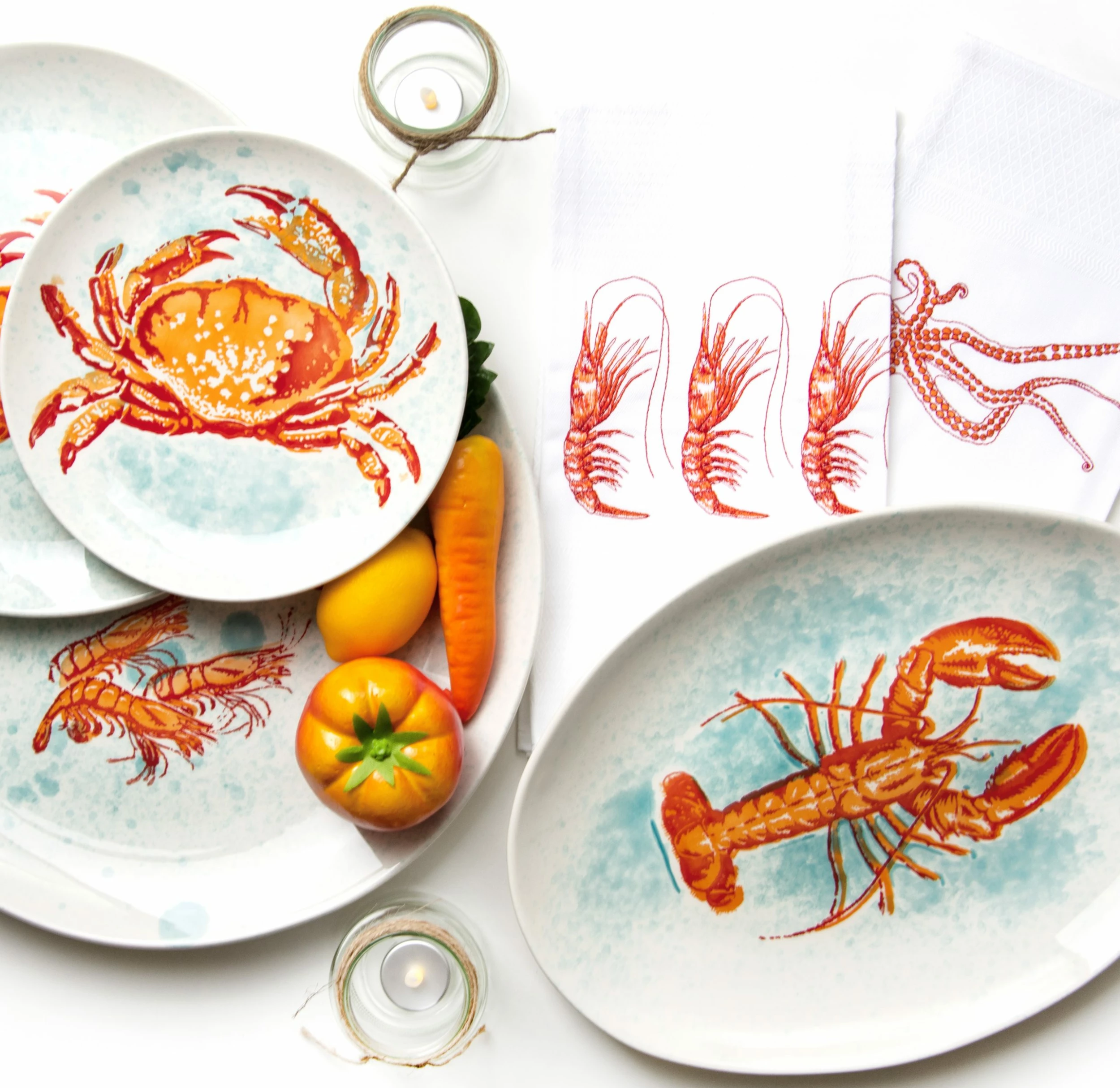 Passend zu den Keramik-Kollektionen sind die Vista Portuguese Geschirrtücher mit Einzelmotiven bestickt. Die farbenfrohen, detailverliebten Stickereien auf dem Diamanten-Webmuster haben verschiedene Meerestiere oder Fliesenmuster zur Auswahl. Hier ist das weiße Vista Portuguese Geschirrtuch aus 100 Prozent Jacquard-Baumwolle mit dem schönen Tintenfisch.