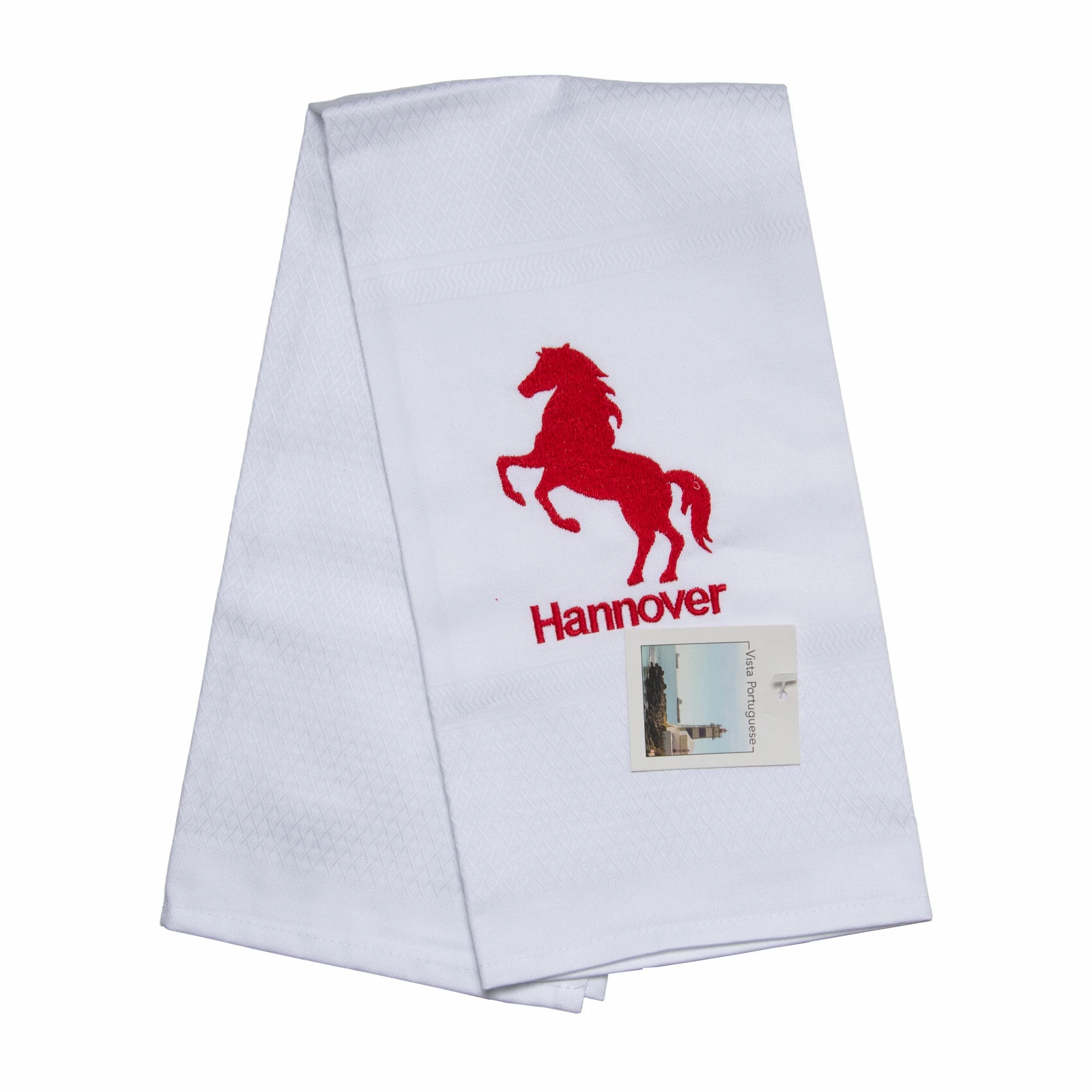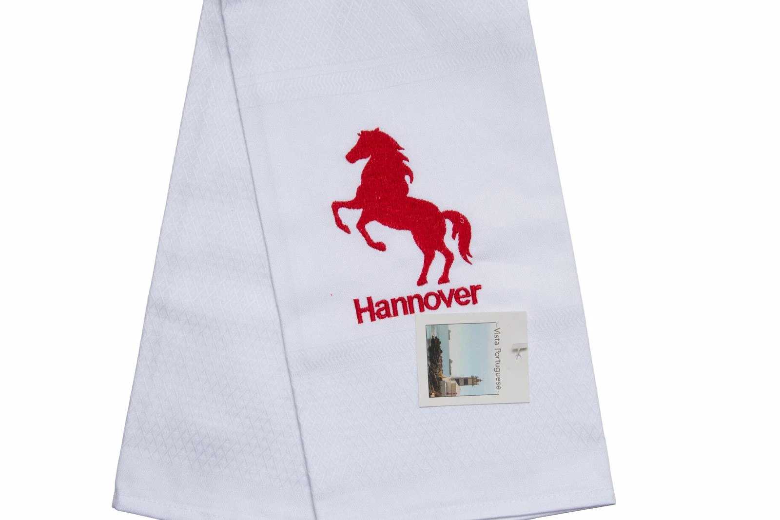 Ob nun als Hannover Souvenir oder für begeisterte Hannoveraner – das weiße 50x70cm Vista Portuguese® Geschirrtuch mit dem aufgestickten steigenden Pferd macht sich als Geschenk gut. Sind auch Sie #hannoverliebt? Dann holen auch Sie sich ein Geschirrhandtuch mit rotem Niedersachsenross in Ihre Küche!
