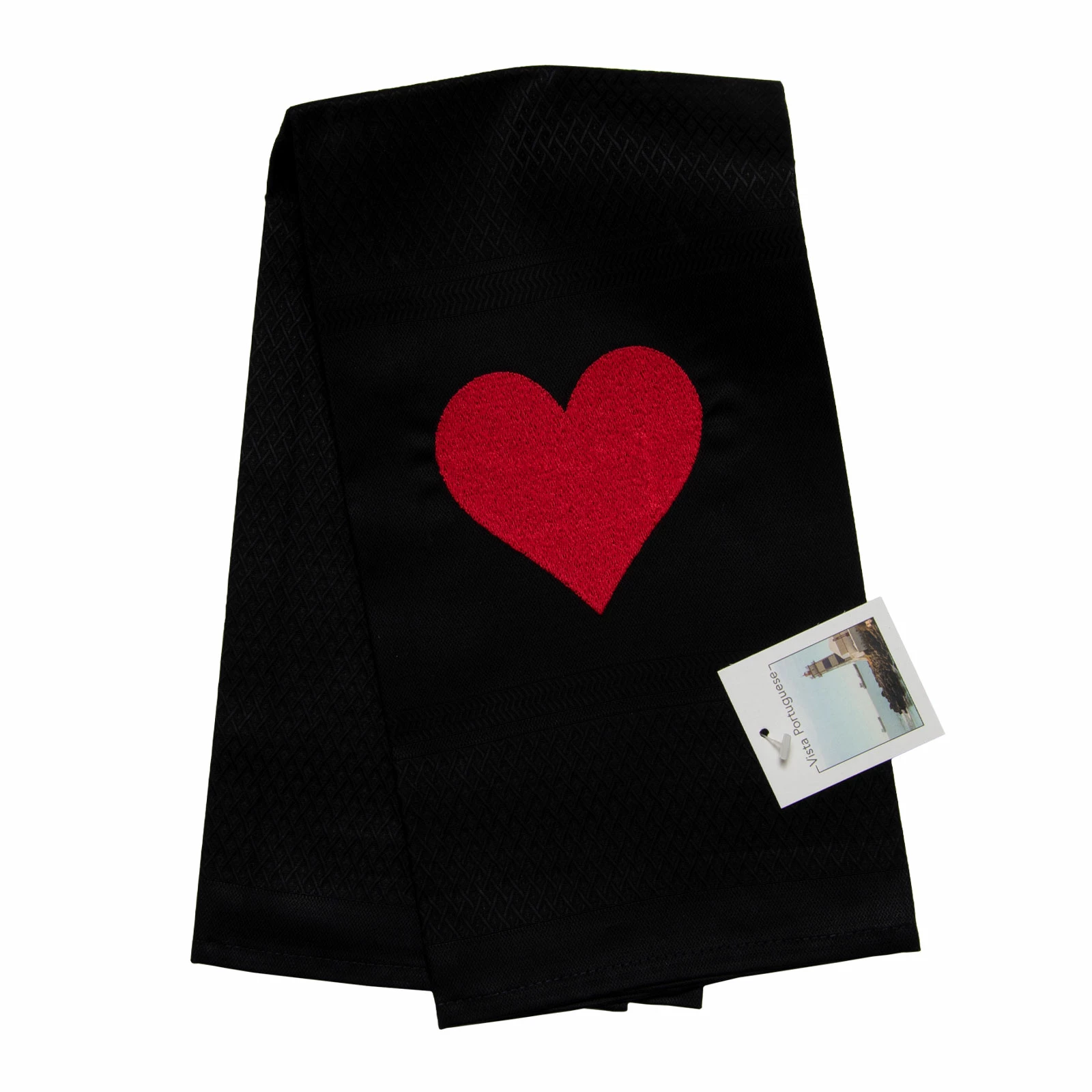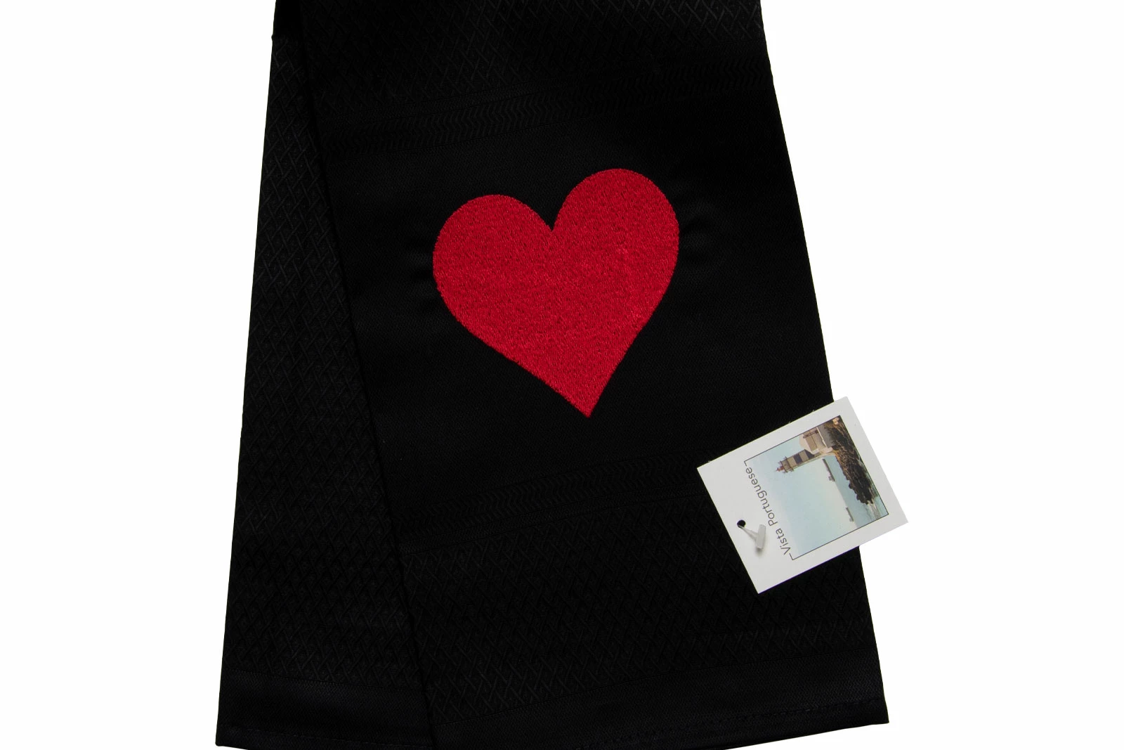 Das schwarze 50x70cm Geschirrtuch mit erdbeerrotem Herz von Vista Portuguese