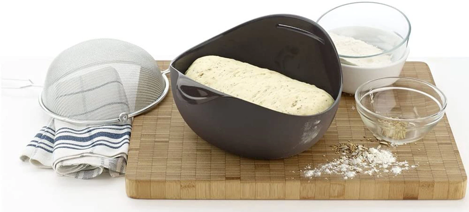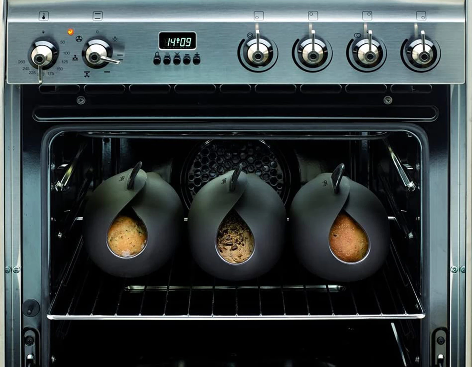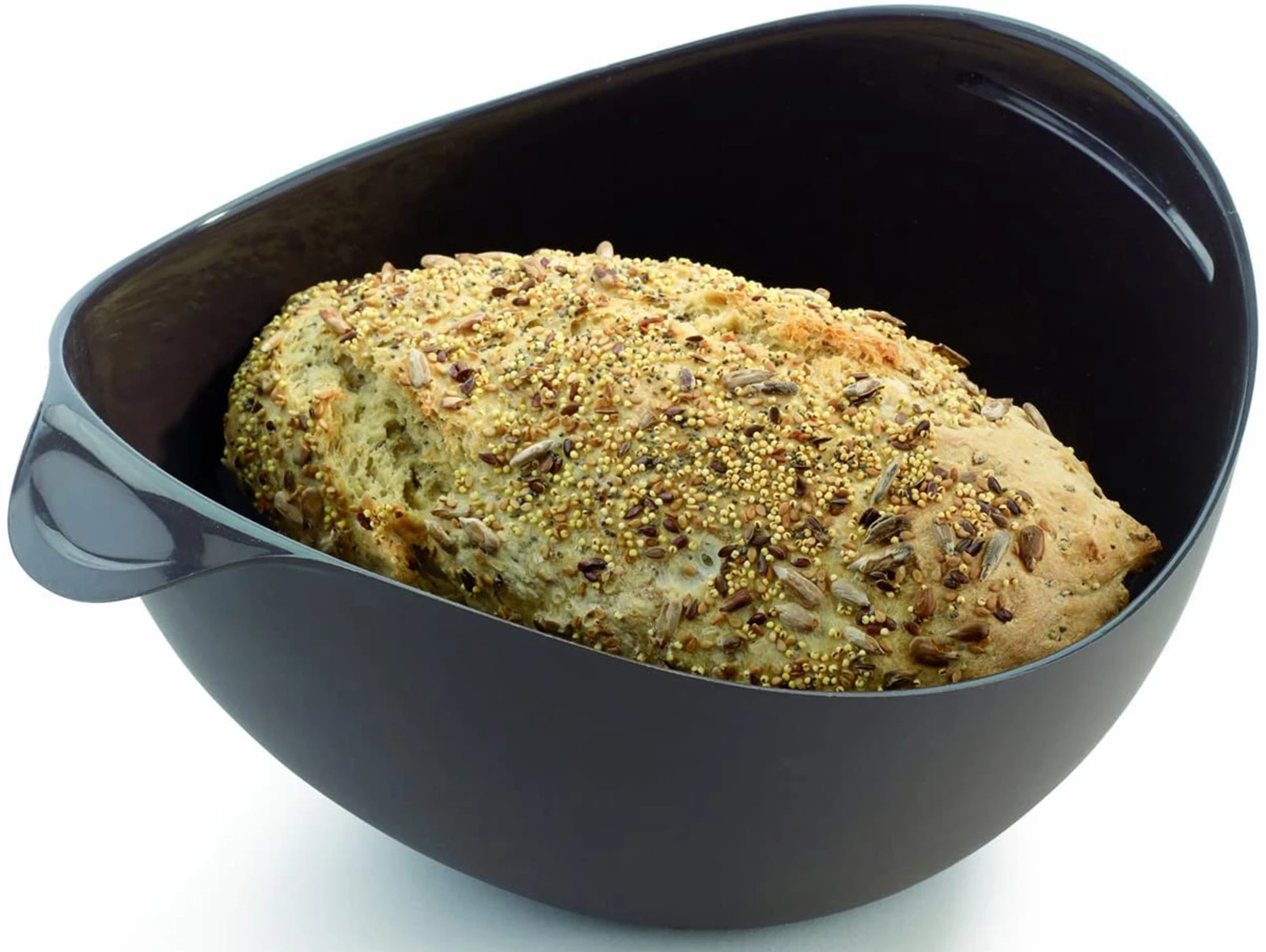 Die antihaftbeschichtete Brotbackschale ist aus Platin-Silikon, ein Material höchster Reinheit, das auch für Babyschnuller und medizinische Implantate verwendet wird. Die Form ist flexibel, hitzebeständig bis 220 Grad Celsius und spülmaschinenfest.