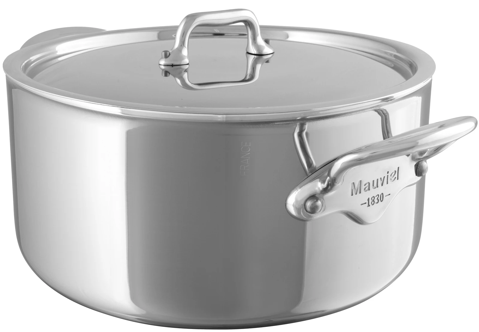 Die Mauviel 1830 M’Cook Edelstahlkollektionen, ob glänzend, gebürstet oder gehämmert, werden sowohl aus Edelstahl- als auch Aluminiumschichten handgefertigt. Diese langlebigen und einzigartigen Kochtöpfe bieten schnelle und gleichmäßige Wärmeleitung für präzises Kochen ohne jede Geschmacksverfälschungen. Leistungsstärke und angenehme Handlichkeit zeichnen die Schmuckstücke mit den robust genieteten Griffen aus und werden weltweit in der professionellen und privaten Küche geschätzt, ja sogar geliebt.