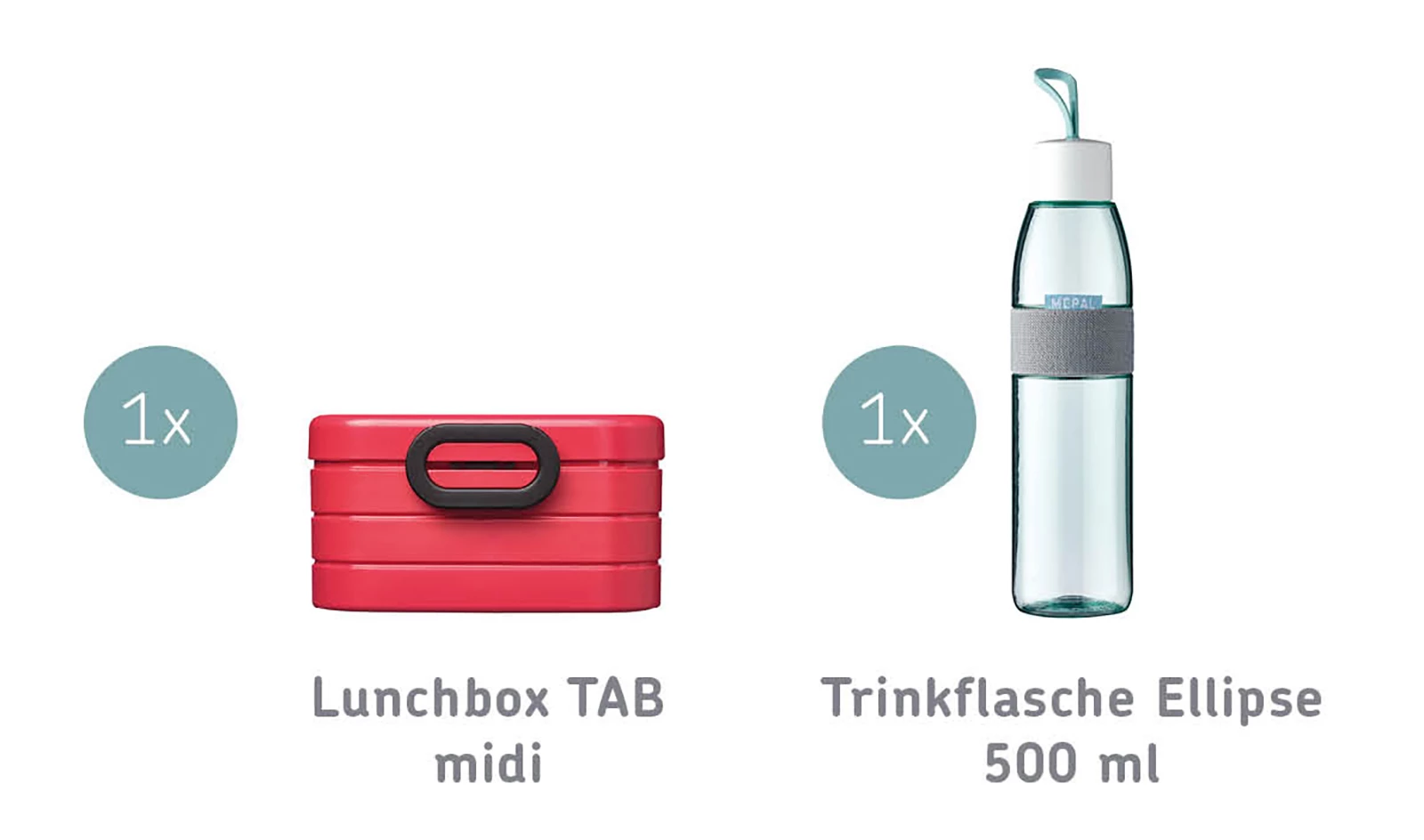 70 Jahre Mepal. Das feiern wir. Deshalb gibt es für kurze Zeit das zweiteilige Mepal Jubiläums-Set TAB und Ellipse nordic red zu einem Sonderpreis. Zu dem Set gehören: eine Mepal TAB Lunchbox midi nordic red und eine Mepal Ellipse Trinkflasche 0,50ltr. nordic red.