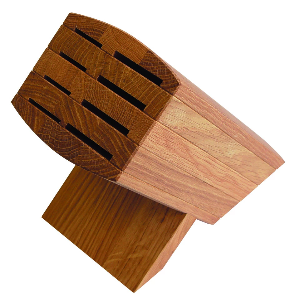 Der KAI Messerblock Wasabi 6600-BN bietet Platz für acht KAI Küchenmesser, wobei Sie natürlich auch Modelle anderer Hersteller hier unterbringen können. Gefertigt ist er aus geöltem Eichenholz, welches sich komplett auseinandernehmen lässt, damit es einfach zu reinigen ist. Der Messerblock wird ohne Messer geliefert.