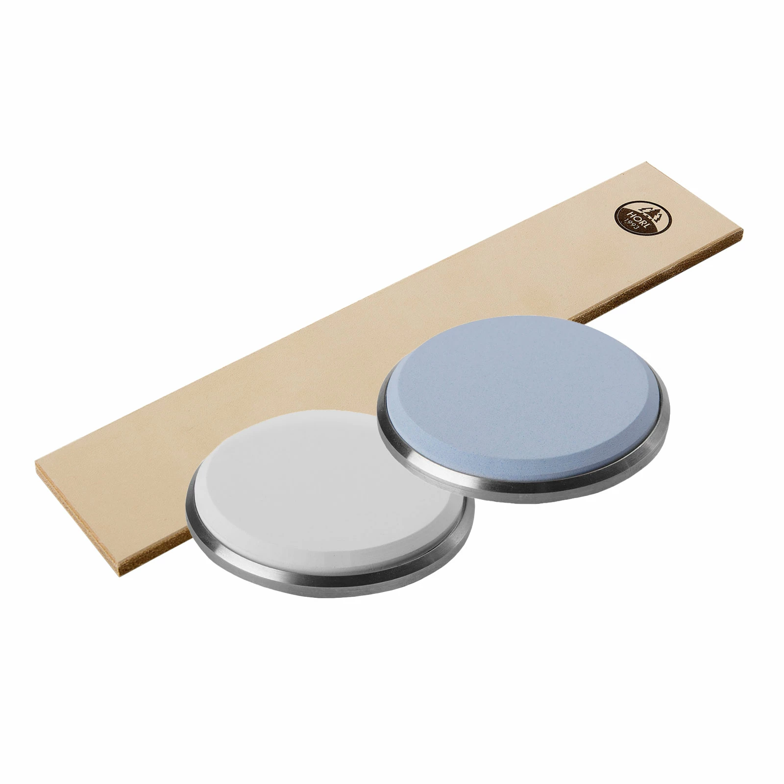 Wenn Sie Ihre Messer noch präziser schleifen möchten als mit dem HORL 2 ohnehin schon möglich, dann können Sie ihn um das Premiumschärfe Paket von HORL 1993 ergänzen. Dieses Erweiterungsset besteht aus den Edelkorund Schleifscheiben mit #3000er und #6000er Körnung und einem Abziehleder. Mit den Schleifscheiben können Sie den Schliff der Standard Diamant Schleifscheibe zusätzlich verfeinern. Die Nutzung des Abziehleders entfernt schließlich mögliche Schleifreste und macht Ihr Messer so noch schärfer. Mit dem HORL 2 Cruise ist dieses Produkt nicht kompatibel.