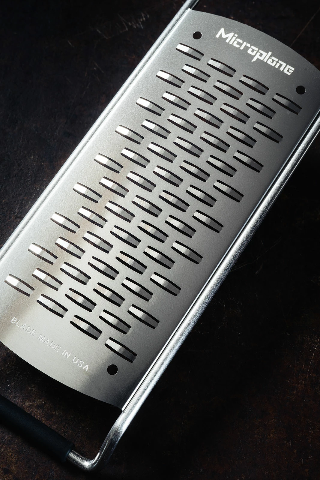 Die Microplane Reibe 2-Wege Schneider schwarz erlaubt das Reiben mit mittelgroßer Schneide in zwei Richtungen, ideal, wenn größere Mengen benötigt werden, zum Beispiel von Möhren, Kohl oder auch Hartkäse.