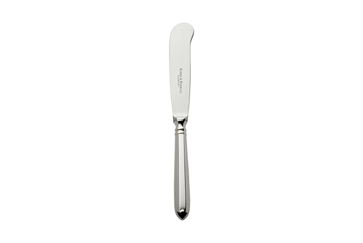 Das Buttermesser mit Stahlklinge aus der massiv versilberten Robbe & Berking Besteck Serie Navette