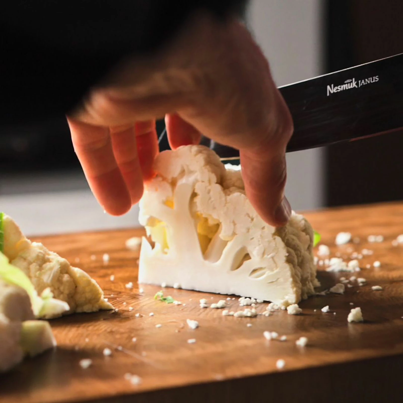 Das Kochmesser aus der Nesmuk Janus Serie mit Griff aus Mooreichein der großen Ausführung
