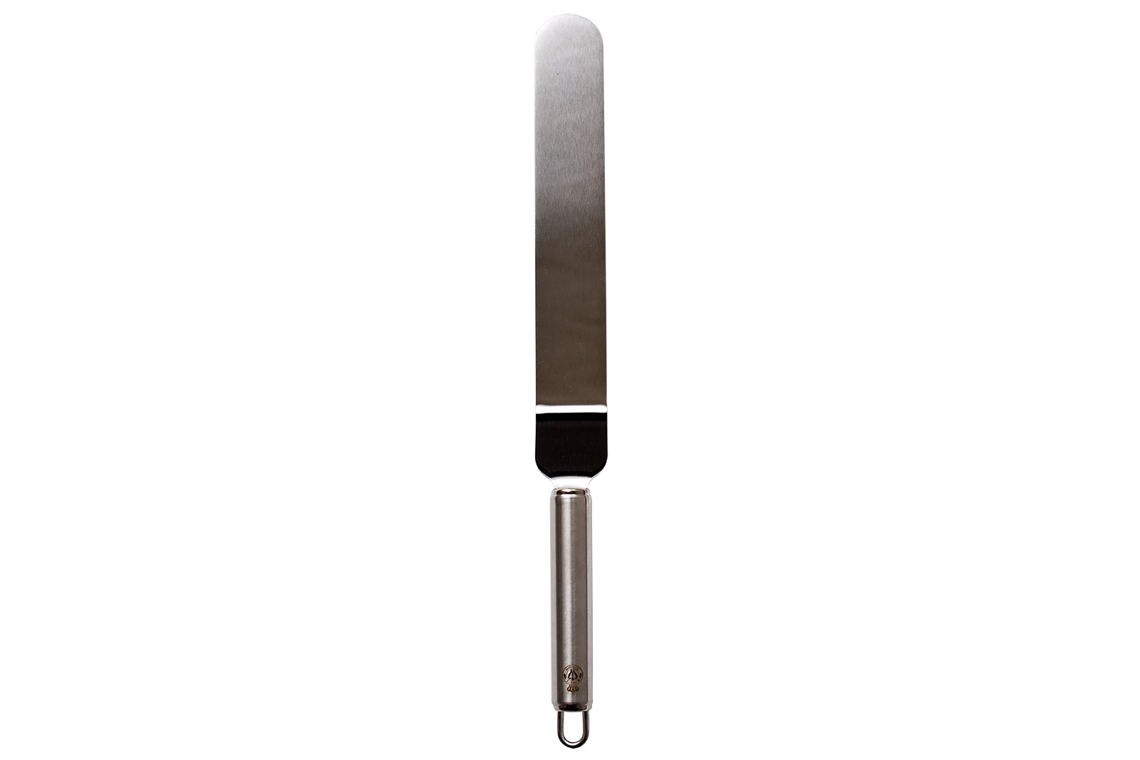 Aus der WEITZ Küchenhelfer Serie ist die abgewinkelte Gourmet Profi Glasurpalette aus hochwertigem Edelstahl ein ergonomisch ideales Werkzeug, wenn es ums Backen geht: Cremes, Sahneschichten und Teig lassen sich mühelos schaben und glätten. Diese Winkelpalette hebt auch Pizza, Kuchen und Torte aus allen Gefäßen. Ein Küchenhelfer mit sicherem Griff und Aufhänge-Öse für die Werkzeugleiste in der Küche. Hohe Funktionalität und ansprechendes Design unentbehrlicher Utensilien für die Küche zeichnen diese Serie aus.