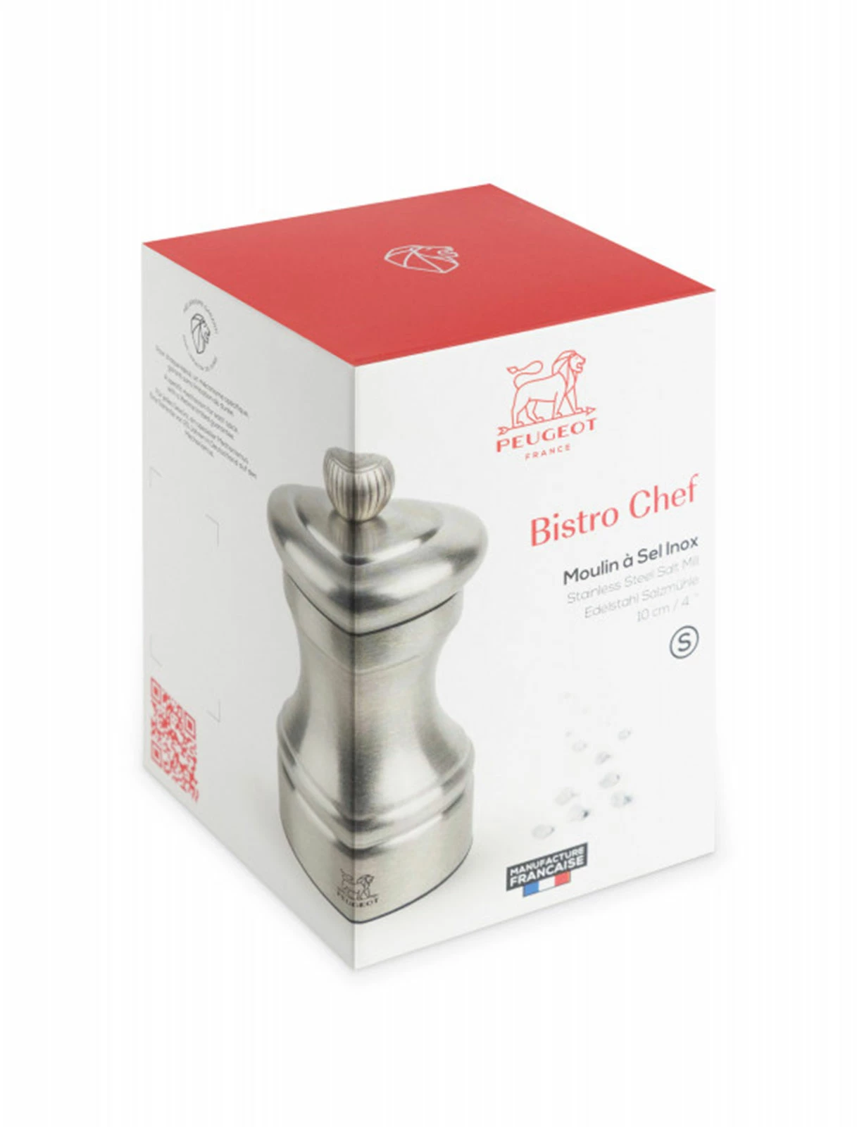 Die Peugeot Bistro Chef Salzmühle ist 10cm groß und vereint mit ihrem Edelstahllook die ausgezeichnete Qualität der französischen Gewürzmühlen mit einem elegant futuristischen Look. Ein kleines Designhighlight in jeder Küche!