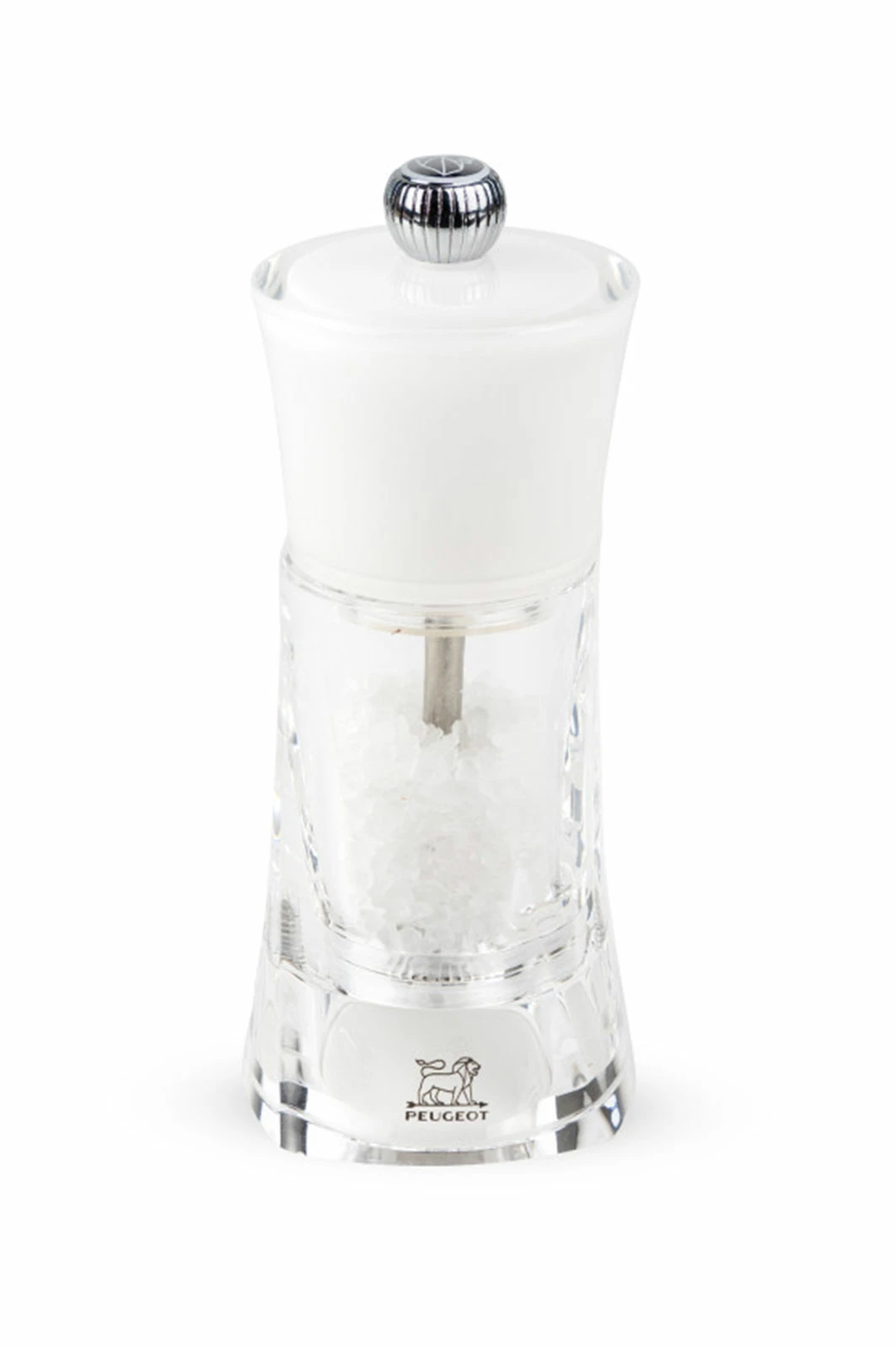 Eine kleine Sensation ist der Firma Peugeot mit der Molène Meersalzmühle gelungen: ein Mahlwerk für feuchtes Meersalz! Ohne Metall, und selbst die Montageschrauben sind abgeschirmt. Damit wird eine Salzkorrosion verhindert. Das Mahlwerk besteht aus einem patentierten Peugeot-Keramiksystem, welches mit drei Stopps für eine konstante Beförderung des Salzes, ohne Verklumpen (Anti-Blockier-Spiral-System), arbeitet. Eine Anti-Verstopf-Spirale mischt das Salz im Vorratsbehälter. Eine normale Mühle wäre niemals fähig, feuchtes Salz zu zermahlen, aber Dank der Peugeot-Spezial-Mühle können Sie nun auch in diesen Genuss kommen. Auf das Spezialmahlwerk haben Sie eine Garantie von 25 Jahren. Der Korpus besteht aus transparentem Acryl und der Kopf ist in Weiß gehalten, was zur Farbe des Salzes passt.