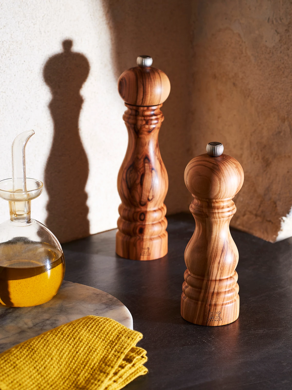 Die 22 cm große Peugeot Paris Salzmühle mit einem Korpus aus Olivenholz gehört zu der berühmtesten Mühlen-Kollektion des französischen Unternehmens. Das charaktervolle Olivenholz ist eines der härtesten und widerstandsfähigsten Hölzer der Welt mit einer kontrastreichen Maserung von bernsteinfarben bis nahezu schwarz. Der hohe Ölgehalt dieses Holzes macht es besonders hygienisch und antibakteriell mit hoher Feuchtigkeitsresistenz. Die Paris Mühlen sind mit schönen Rundungen versehen und liegen perfekt in der Hand. Der berühmte Metallknopf mit dem Löwenkopf hat die Funktion zur Mahlgradeinstellung. Je stärker der Knopf angezogen wird, desto feiner wird das Salz. Für den Mühlenkorpus wird nur ein nach PEFC™ zertifiziertes und geöltes Holz verwendet. Auf das Mahlwerk, made in France, haben Sie eine Garantie von 25 Jahren, auf die Korpus-Elemente, made in France, eine Garantie von fünf Jahren.