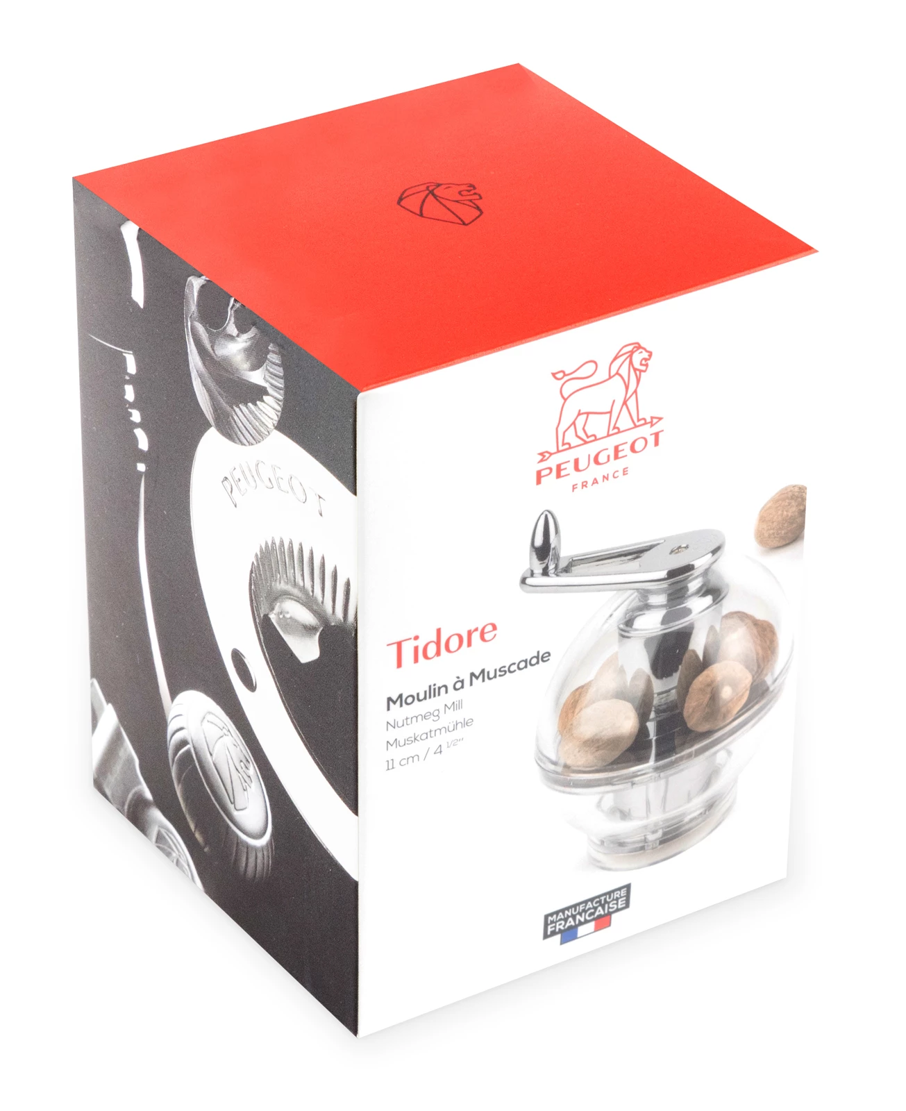 Die Peugeot Tidore Muskatmühle ist rund und mit einer manuellen Kurbel ausgestattet. Sie besteht aus transparentem Acryl, wodurch sich immer genau sehen lässt, wieviel Muskatnüsse noch in der Mühle sind. Eine extra starke Fixierung hält die Muskatnüsse fest, damit die doppelten Schneiden perfekt an die Nüsse gelangen. Das Ergebnis ist ein sehr feines Muskatpulver, das perfekt sein Aroma und seinen Geschmack entfaltet.