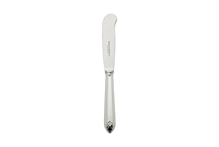 Das Buttermesser mit Stahlklinge aus der massiv versilberten Robbe & Berking Besteck Serie Arcade