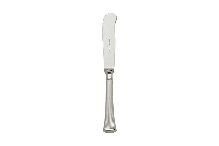 Das Buttermesser mit Stahlklinge aus der massiv versilberten Robbe & Berking Besteck Serie Avenue
