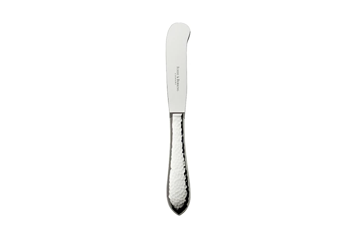 Das Buttermesser mit Stahlklinge aus der massiv versilberten Robbe & Berking Besteck Serie Martelé