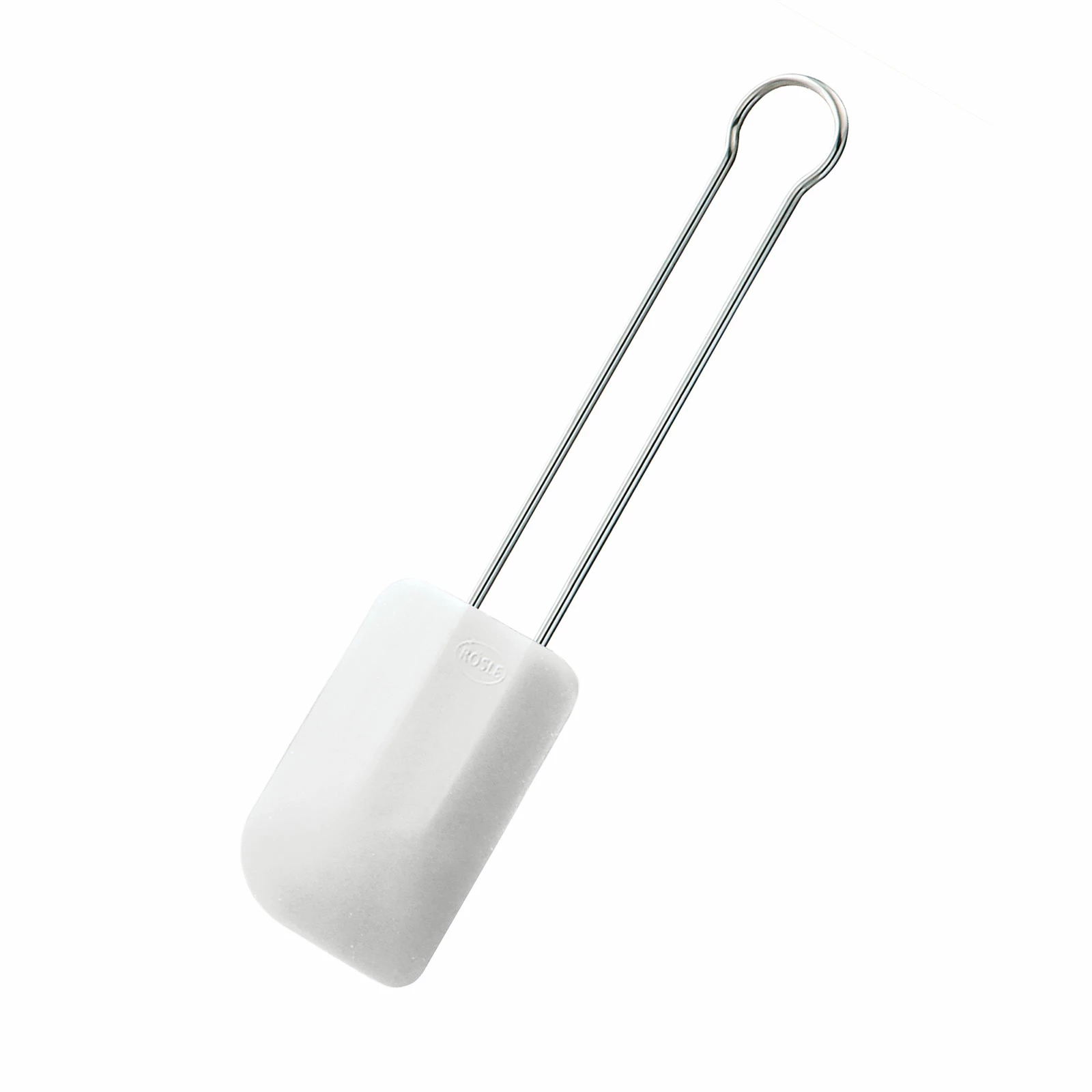 Der Rösle Teigschaber 32cm Silikon weiß mit Edelstahldrahtgriff ist über viele Jahre enorm strapazierfähig und temperaturbeständig von -30 bis +220 Grad Celsius. Eine weiche Seite passt sich Gefäßrundungen an und eine härtere Seite eignet sich zum sauberen Glattstreichen, unempfindlich gegenüber Säuren und Fetten.