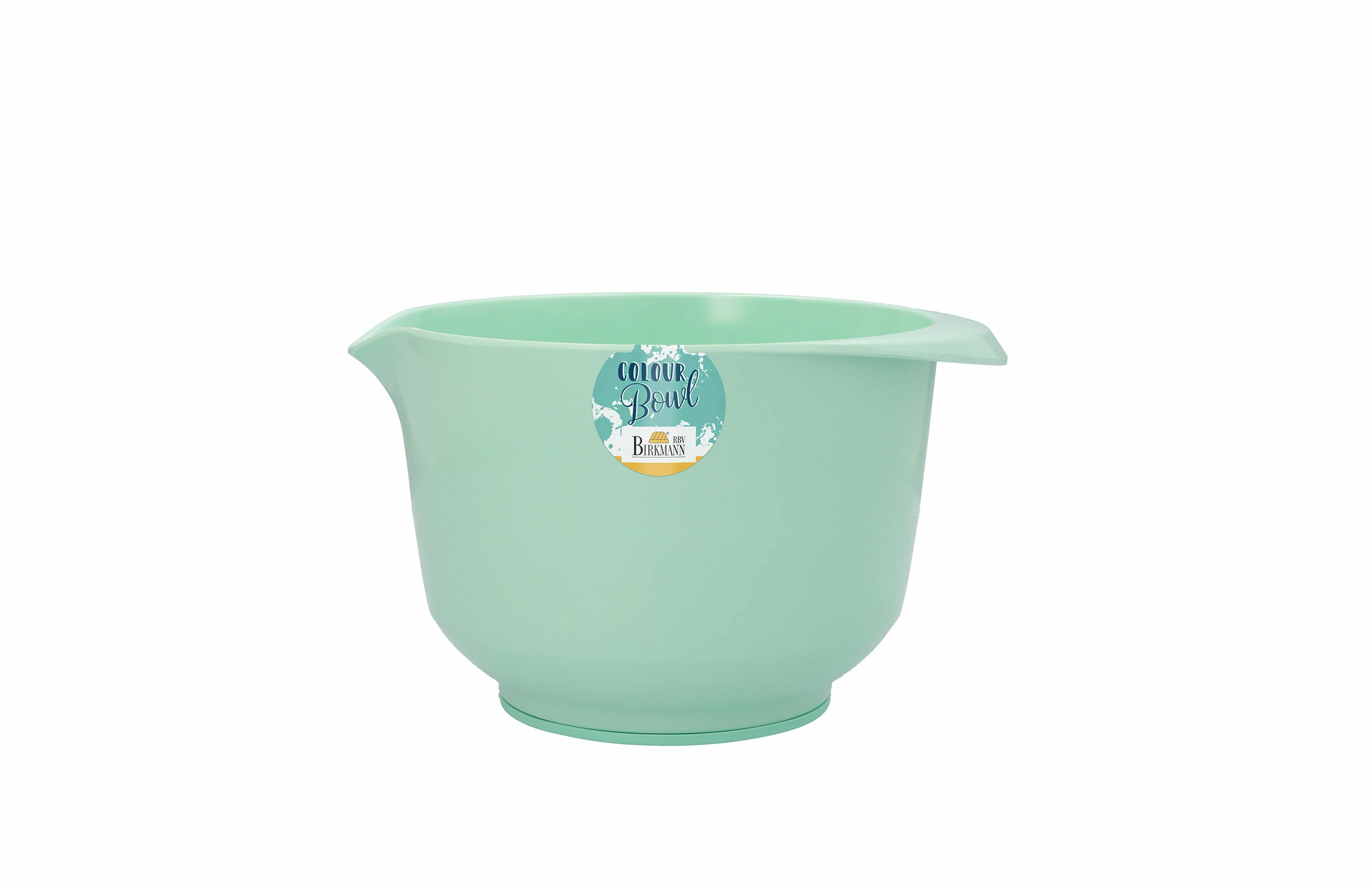 Die farbenfrohe Küchenserie Colour Bowl von RBV Birkmann ist stylish und praktisch, langlebig und kratzfest aus nachhaltigem Melaminharz. Die Rührbecher und -schüsseln erscheinen seit 2020 in den Farben rot und gelb, türkis und limette, rot und rose, weiß und grau. Die verschiedenen Größen reichen von 1 Liter Inhalt über 1,5 und 2 sowie 3 und 4 Liter. Mit dem Antirutsch-Ring aus Silikon am Boden haben diese Küchenhelfer sicheren Stand und sind hitzebeständig bis +65 Grad Celsius.