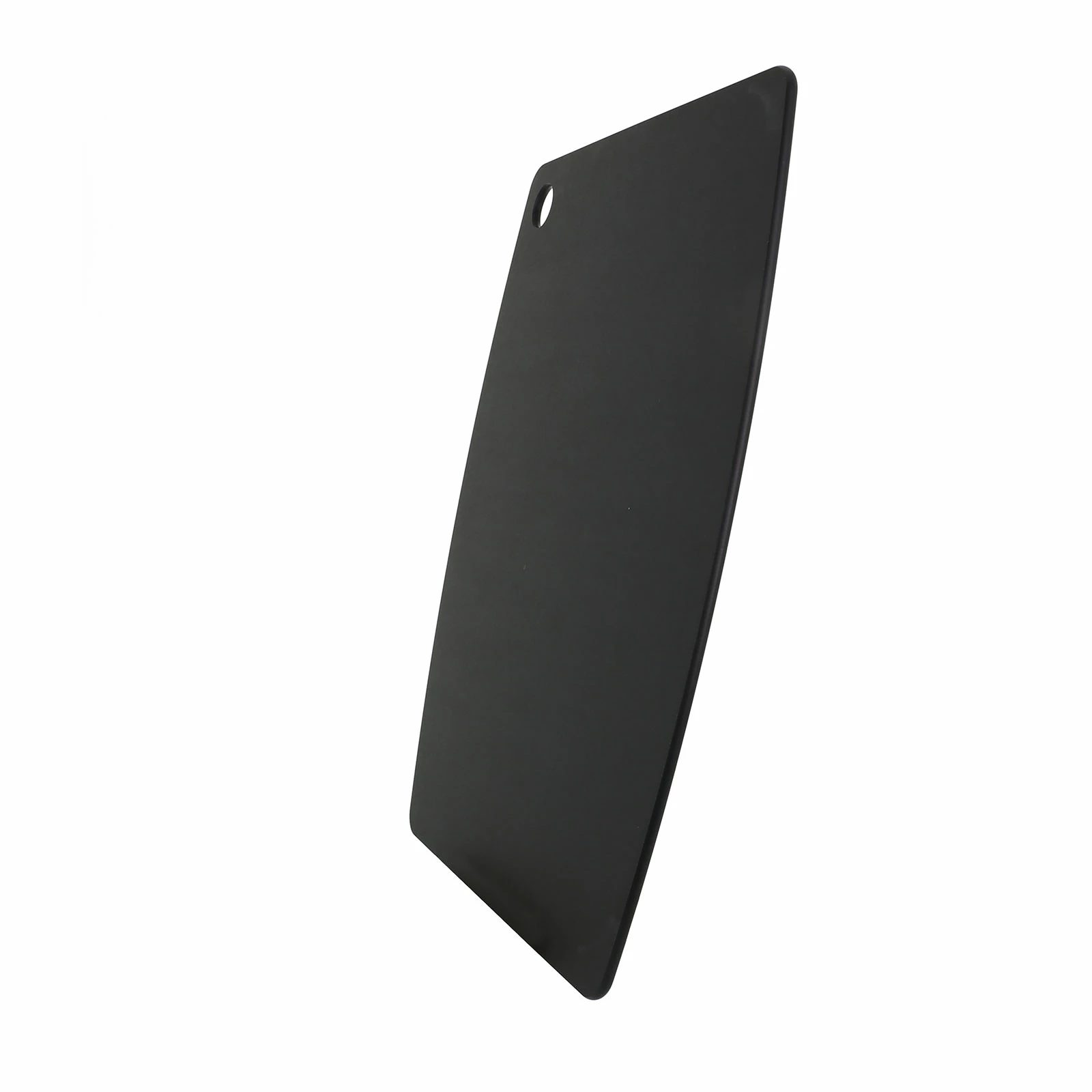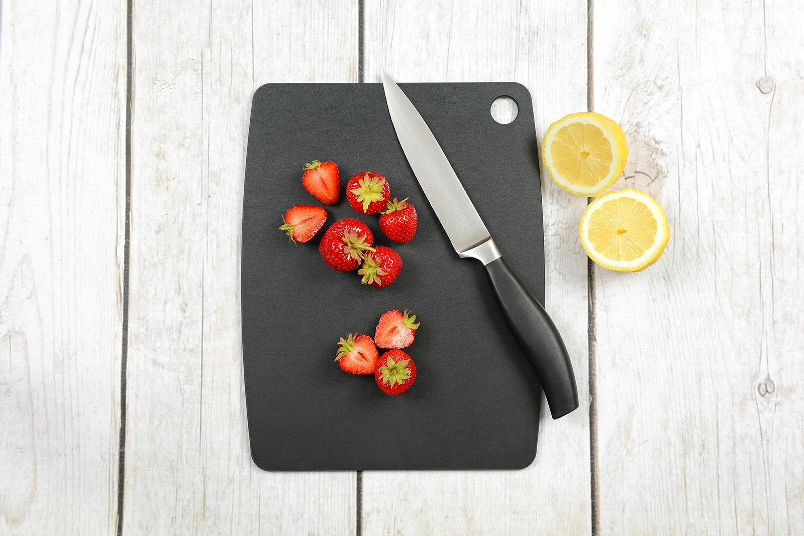 Die JADE Gourmet Kitchen Schneidebretter aus schwarzem Holzfiberlaminat sind der ideale Küchenhelfer. Ihre sanft geschwungenen Kanten sorgen zusammen mit der schwarzen Farbe für ein elegantes Aussehen – doch das robuste Material und die Aufhängeöse machen sie dabei gleichzeitig hoch funktional. Auch in einer Profiküche sind sie nicht fehl am Platz.